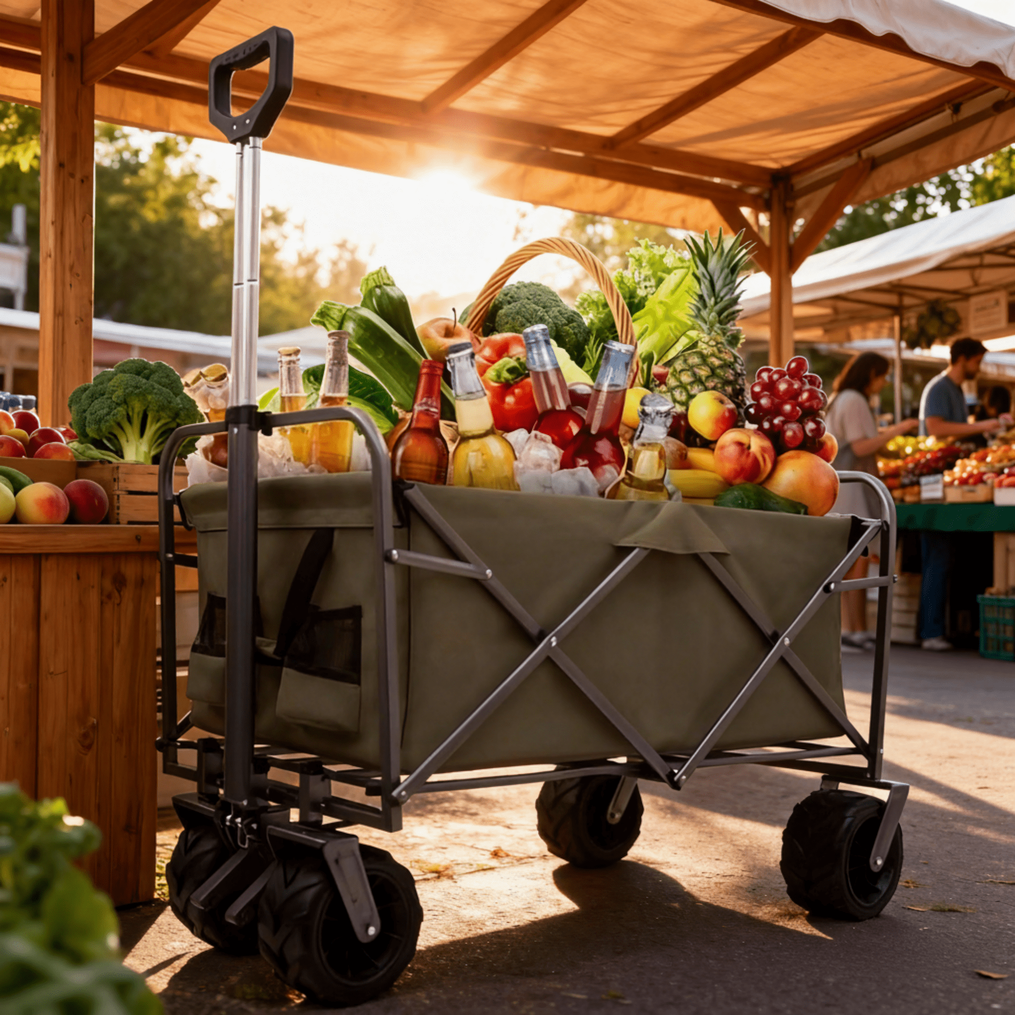 ENYOPRO 440LBS Collapsible Wagon Cart, Heavy Duty Foldable Beach Wagon for Sand w/ Big Wheels, Portable Folding Utility 600D Oxford Cloth Cart with Cup Holder, Extra Pocket, Green