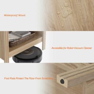 Set of 2 End Tables for Bedroom, Small Side Table Wood Nightstand with Storage for Living Room, Office, oak