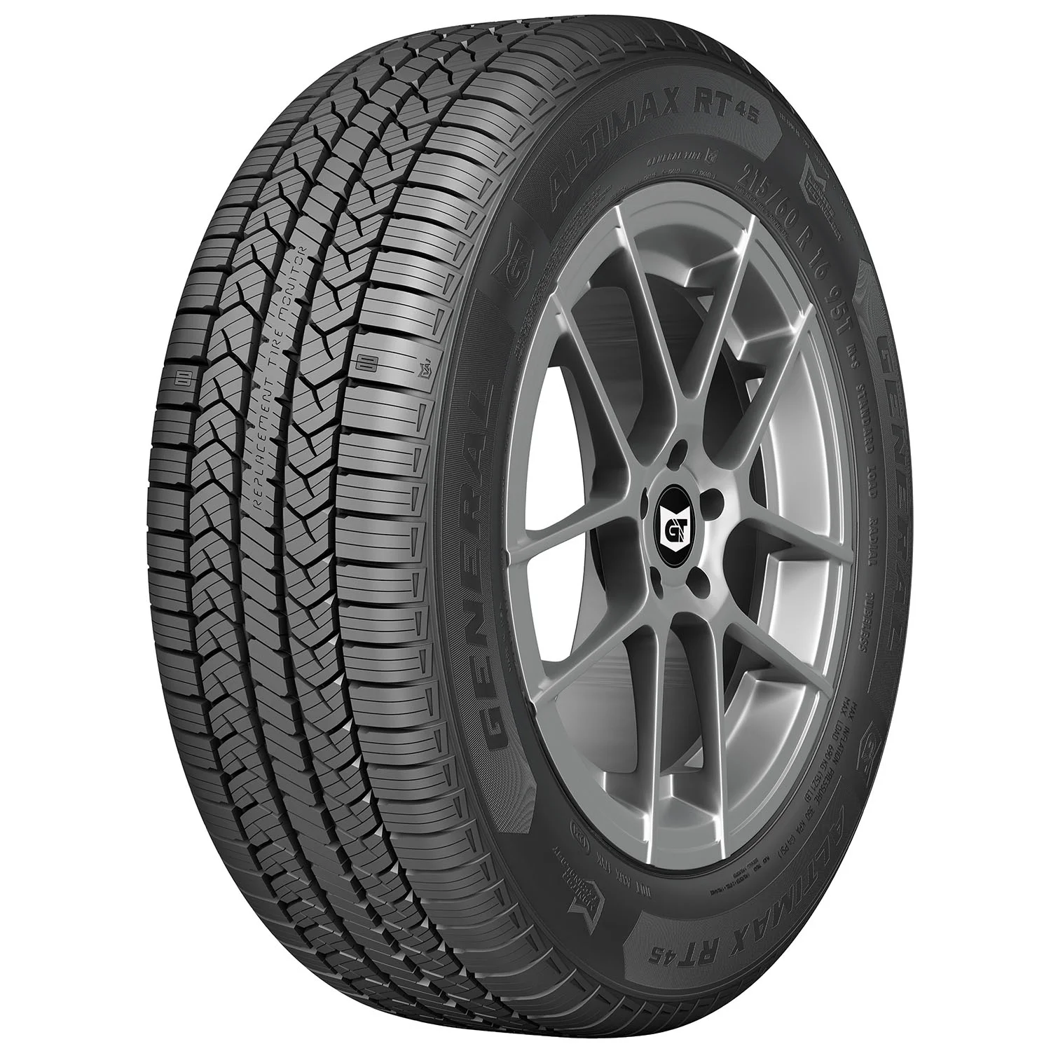 The General Tire AltiMAX RT45 is a long-lasting, all-season touring tire for coupes, sedans, minivans, and crossovers that’s backed by up to 75,000-miles of limited manufacturer tread life coverage. Offering drivers reliable braking on wet roads, the AltiMAX RT45 utilizes Generals’ Replacement Tire Monitor which features letters in the tread that wear off to read “REPLACE TIRE” when the tire wears to 2/32 of tread depth, indicating a tire change is needed.