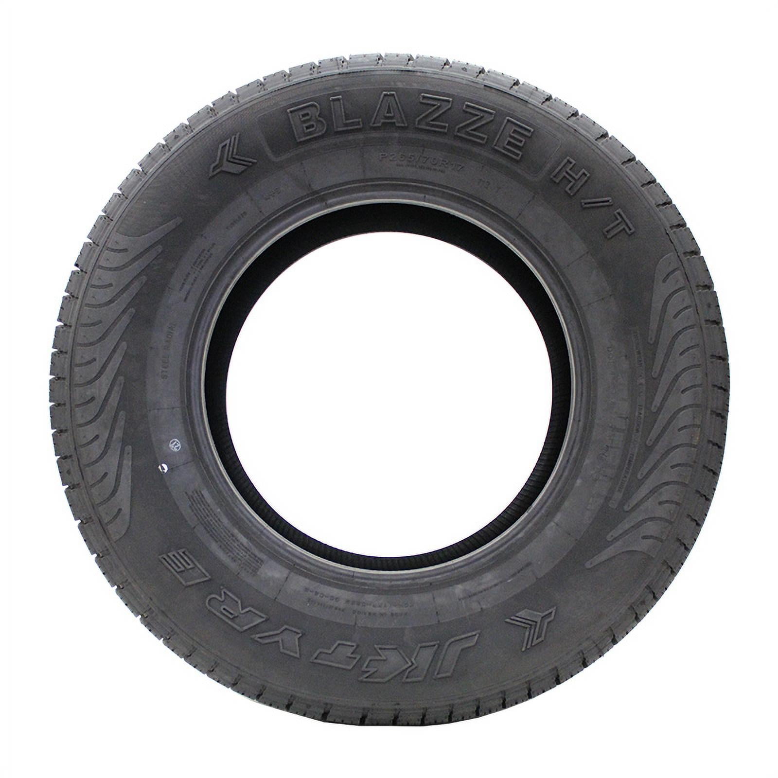 An all-season highway terrain tire, the Blazze H/T from JK Tyre is designed for use on light trucks and SUVs. Four wide grooves within the tread remove water from the contact patch to reduce the risk of hydroplaning, and the Blazze H/T’s center tread blocks are designed to enhance traction and handling at highway speeds.