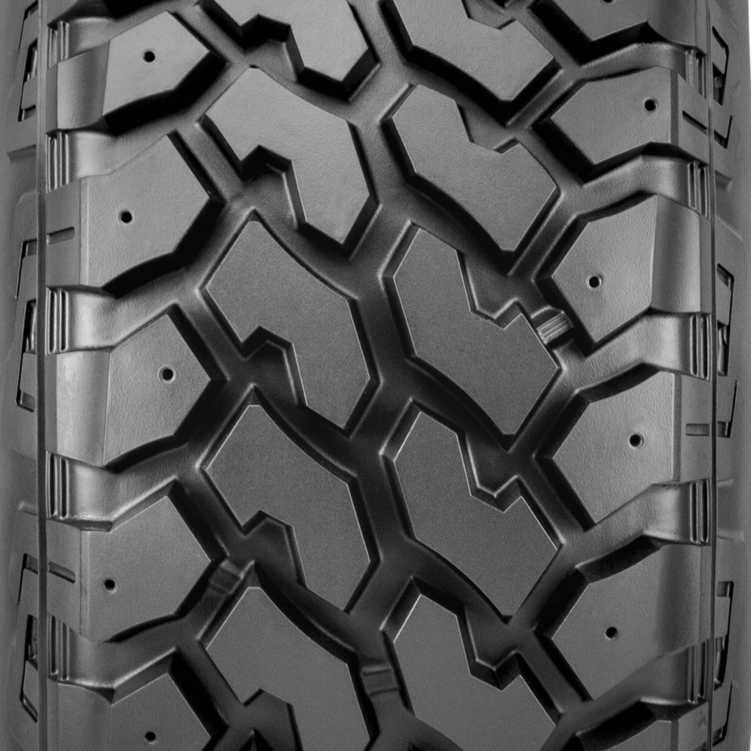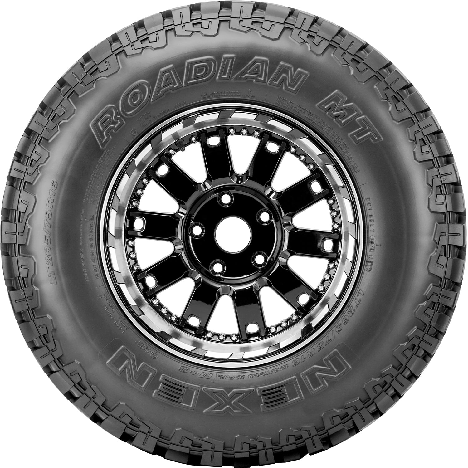 The Roadian MT from Nexen is a mud terrain tire that’s designed for use on Jeeps, light trucks, and SUVs and features deep grooves for strong traction in mud, dirt, rocks, and other tough off-road terrains. Super rigid tread blocks and tough shoulders provide extra durability and a higher load carrying capacity, and the Roadian MT’s zigzag shoulder blocks and wide grooves drain water, mud, dirt, rocks, stones, slush, and other debris out of the tire to reduce the risk of hydroplaning, promote consistent traction, and protect the casing from damage.
