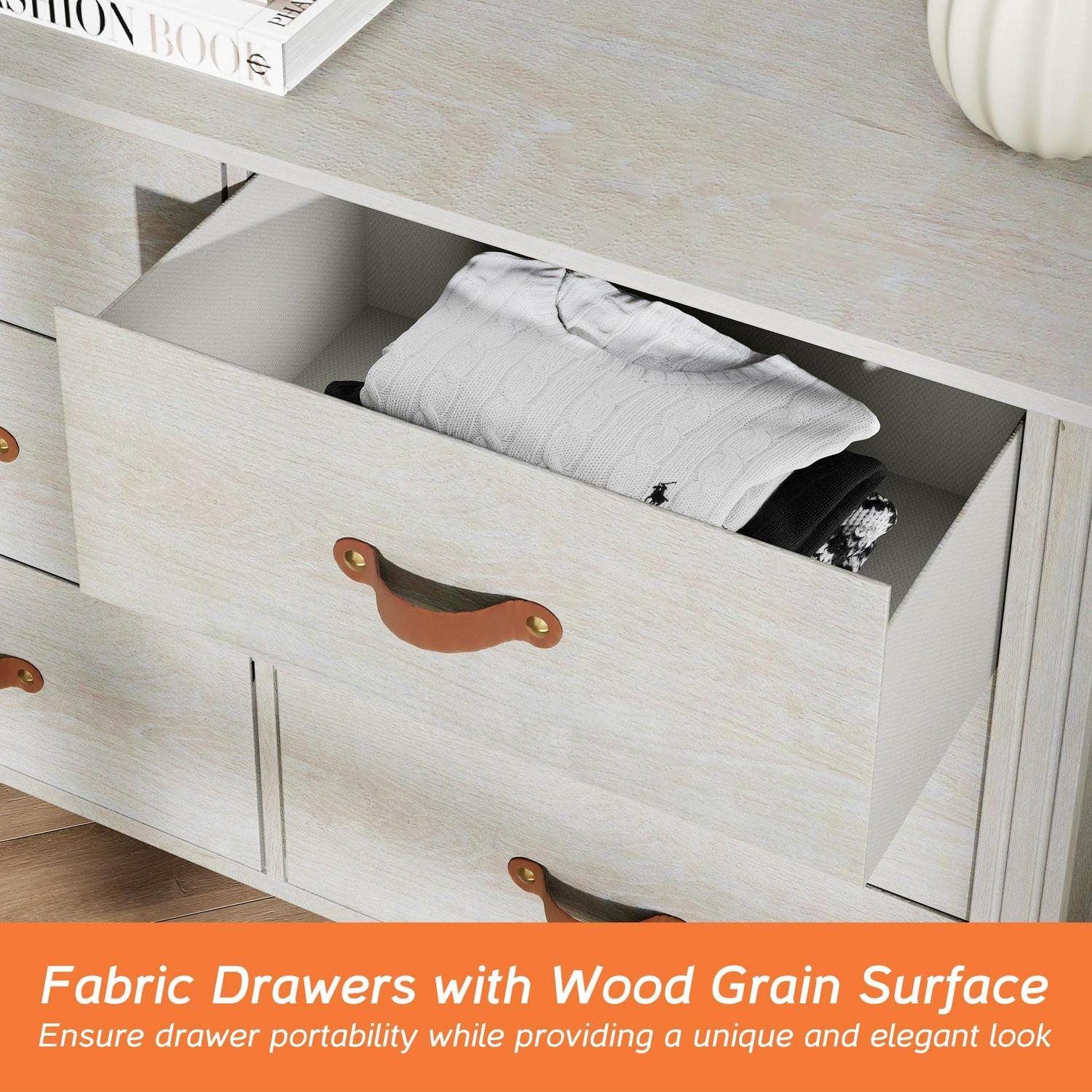 Large Drawer With 6 wide drawers, the large dresser allows you to store many items. And the fabric drawers with wood grain surface is portable and elegant.