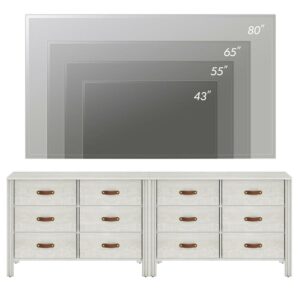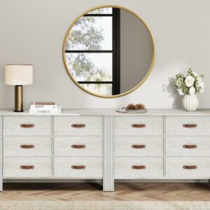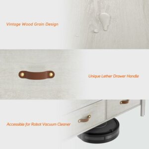 Elegant and Simple Look The white dresser is designed with wood grain surface and leather handle to offer more peculiarity. It also can be used as storage cabinet, console table, etc.