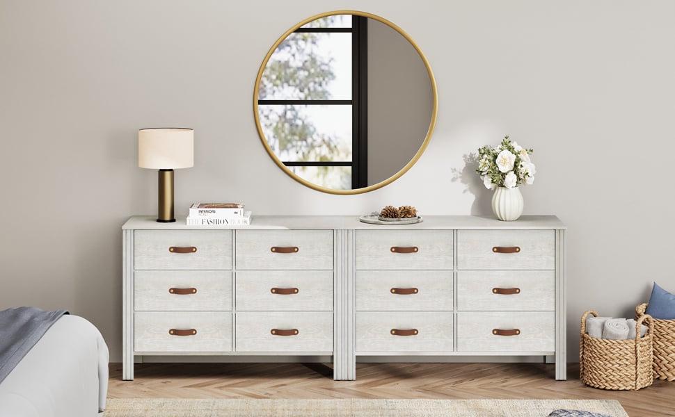 Set of 2 White Dresser for Bedroom, Large Wood Dresser with 6 Drawers, Storage Cabinet for Living Room, Hallway