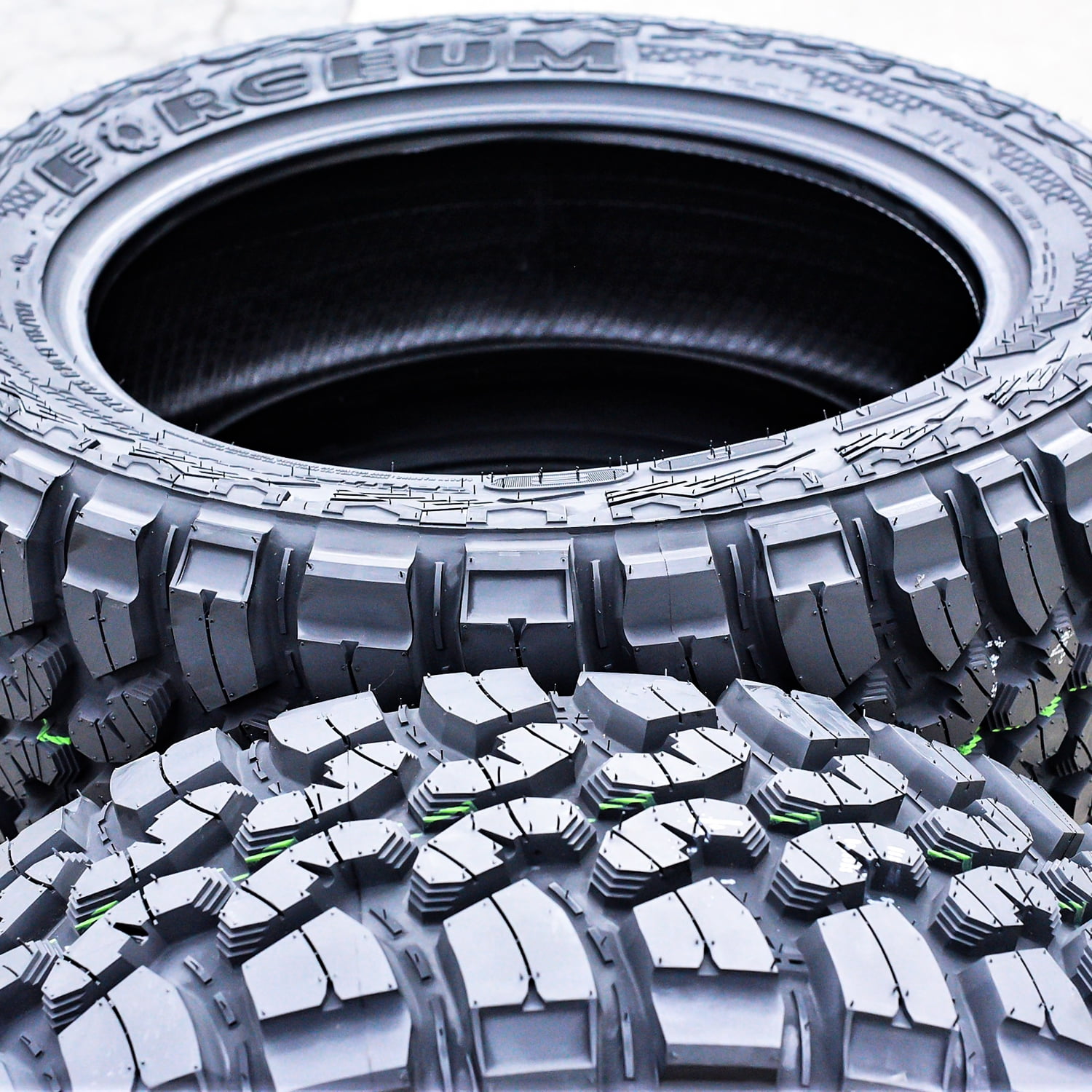 Forceum M/T 08 Plus OVERVIEW The Forceum M/T 08 Plus is a mud terrain, all season tire manufactured for light trucks and SUVs. The tire conquers all loose and soft road surfaces as it has excellent mud terrain traction. This enhanced mud terrain traction is the result of the center rib located in the tread pattern, which hinders the mud flow through the footprint. The stopped mud flow provides a clean tread and the tire maintains excellent mud traction. The tire’s traction is also enhanced with the self-cleaning ability of the tread itself. The tread blocks clean out mud and snow and eject rocks stuck in the tread grooves, maintaining constant road contact without fail. The tread design was improved on this tire compared to the previous MT-08 model. The tread blocks are more detailed and have additional sipes on them for boosted road grip. The all season compound used in its manufacture provides superb all weather traction and it grips the road well, even in winter weather. The wide grooves in the tread pattern help eliminate water from below the tire’s footprint, increasing its resistance to hydroplaning. The tire is safe to use year-round thanks to this special tread design. The M/T 08 Plus also offers precise steering responsiveness and great driving stability. The improved tread design keeps constant contact with the road, which improves the steering precision of the tire. The tire is quick to respond to the driver’s instructions, allowing them to correctly respond to differing road conditions. The tire’s on-road driving stability is also due to the center rib in the pattern, which maintains road contact, but is also enhanced by the tire’s reinforced internal structure. Thanks to this, the tire is able to prevent deformity at higher speeds while driving on-road. The intended purpose of Mud Terrain tire types is off-road use. They are not designed for regular highway driving. Not all tire sizes are suitable for all vehicle types. Please refer to the item specifications for accurate information about vehicle type fitment for this particular size. Manufacturers recommend changing tires every 10 years. As long as tires are properly stored before they are sold, the year of their manufacture will not shorten their service life.