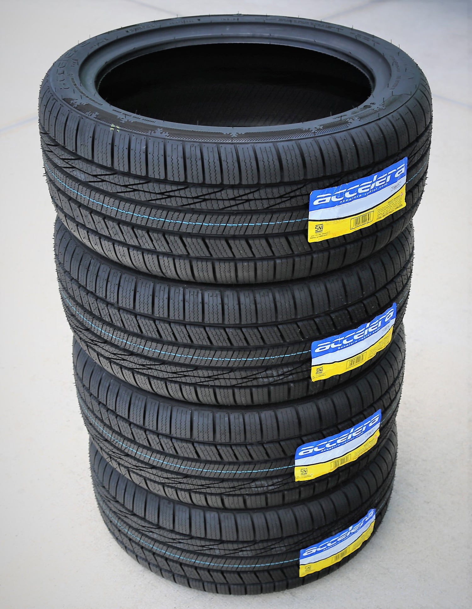 Accelera X-Grip N OVERVIEW The Accelera X-Grip N is a performance, winter tire manufactured for passenger vehicles and SUVs. This model has some touring sizes too. The tire enhances the winter weather performance. The asymmetric ribbed pattern and the high-density siping placement and the winter compound boost the winter weather grip on the road surface. The high-density sinusoidal siping placement upgrades the number of biting edges gripping the ice- and snow-covered road surfaces. The compound, on the other hand, keeps the rubber’s flexibility in freezing temperatures, enhancing the traction in winter conditions. The tread features four wide circumferential grooves preventing hydroplaning by channeling water and slush from the footprint, keeping the surface contact and further enhancing the wet weather grip. The durable construction and the stronger compound work together to boost the tire’s high speed performing ability. The internal structure maintains the ideal tire shape under the high speed driving pressure affecting the model. The compound eases the pressure off the tire and prevents heat build-up along the tread area. The ideal tire shape and the durable high speed performance enable the tire’s high speed safety. In this manner, the tire is able to securely perform at the tire’s best high speed capability. The X-Grip N upgrades the controllability as well. The asymmetric ribbed pattern closely follows the road surface and maintains the tire’s surface contact at all times. In this manner, the tire is able to enhance the steering responsiveness and the driving stability. The high-density sinusoidal siping placement manages to shorten the braking distance. These sipes create friction between the tire and the road surface, shortening the braking distance significantly. This enables the driver to improve their control over the vehicle during its high speed winter weather performance. Manufacturers recommend changing tires every 10 years. As long as tires are properly stored before they are sold, the year of their manufacture will not shorten their service life.