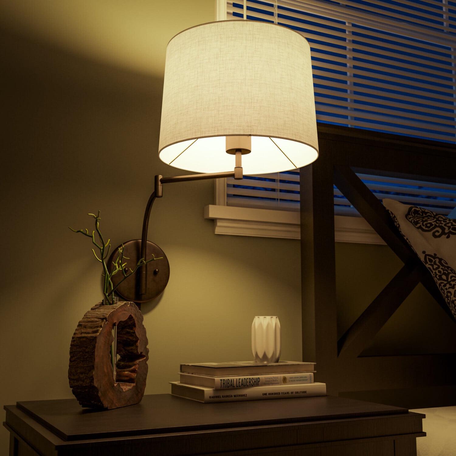 – Swing arm construction: this transitional wall lamp features a fully adjustable swing arm, allowing you to reposition the crisp white tapered drum wherever you need it for excellent use as a reading light or task light. the rich oil rubbed bronze contrasts with the white shade for a casual, transitional look that coordinates with contemporary, traditional, and minimalist home decor.