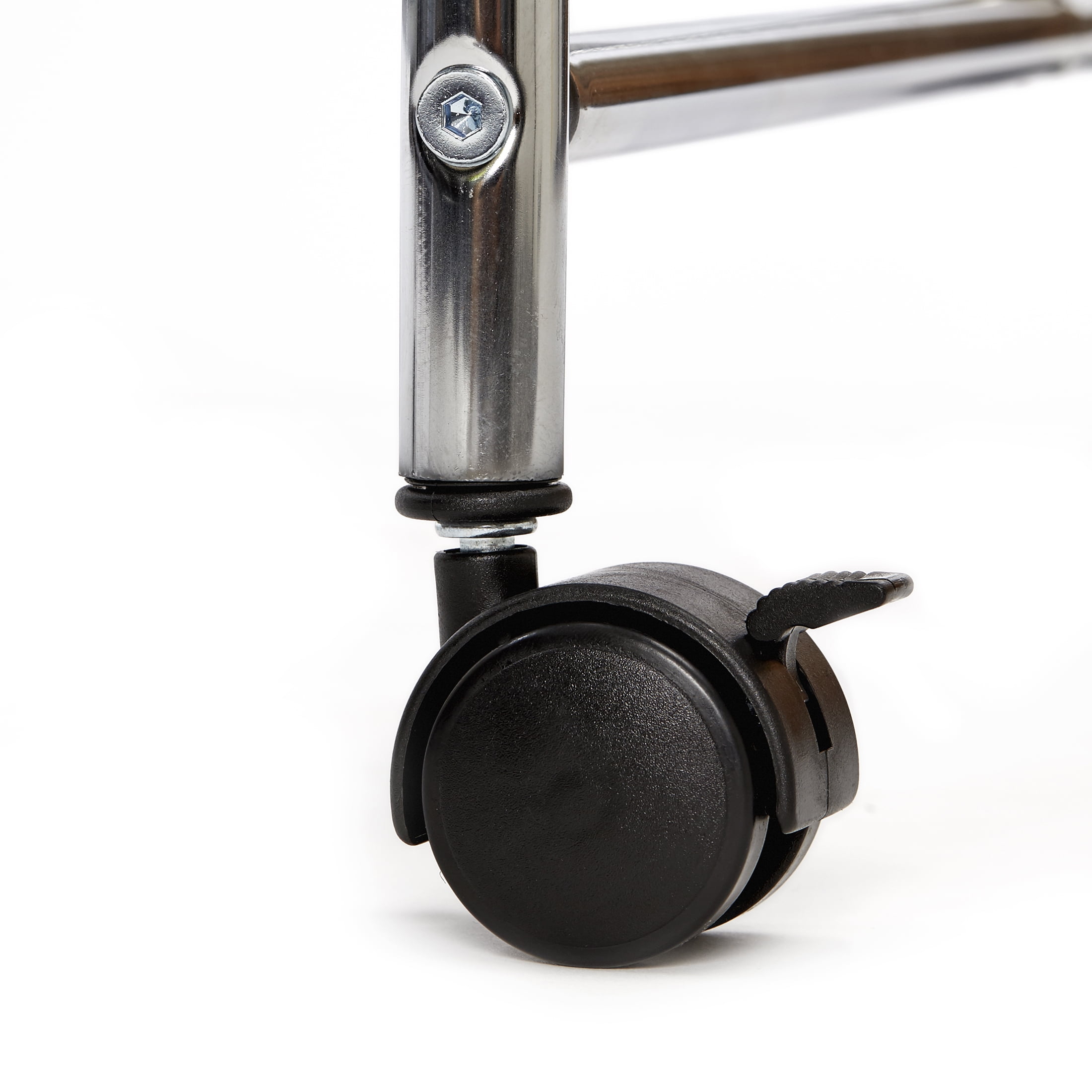 Save space with Seville Classics 10-Drawer Organizer Cart. Constructed with industrial-strength tubular steel finished in chrome, the cart features tall, easy-to-grab handles and a removable perforated top shelf. Cart includes 10 removable polypropylene drawers in red, orange, green, blue, and violet with a translucent finish, chrome drawer pull knobs, and includes 2 drawers per color. The interior of each drawer measures 13.63 inches long, 9.5 inches wide and 2.5 inches tall. That’s deep enough to hold a ream of printer paper with space to spare. Each drawer can hold up to 3.3 lbs. while the top shelf can withstand up to 16.5 lbs. Remove drawers and re-order them as needed for an organization solution that works for you. Create a color-coded system for organizing any room in your home. Use it as a rainbow makeup organizer or as arts and crafts storage. Fill it with notepads, binders, staples, and other supplies next to your desk as an office storage cart. The cart includes four 1.5-inch casters with two that lock, so the cart goes where you need and stays where you put it. This convenient organizer is ideal for use in the dorm room, classroom, office, bedroom, bathroom, kitchen, garage or workspace.