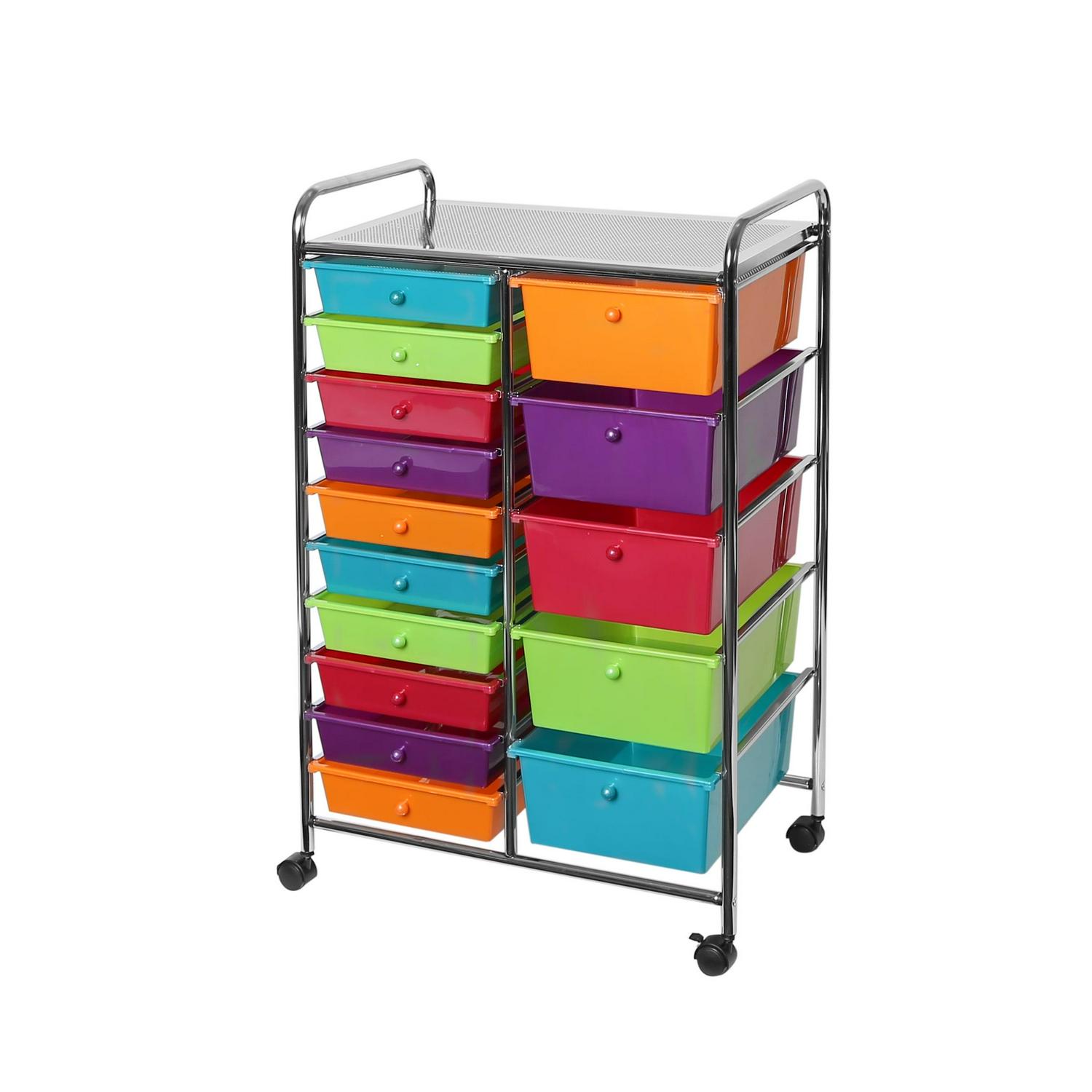 Seville Classics 15-Drawer Organizer Cart, Pearlescent Multi-Color