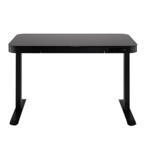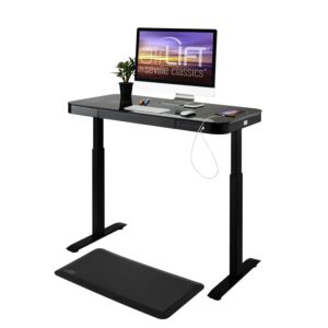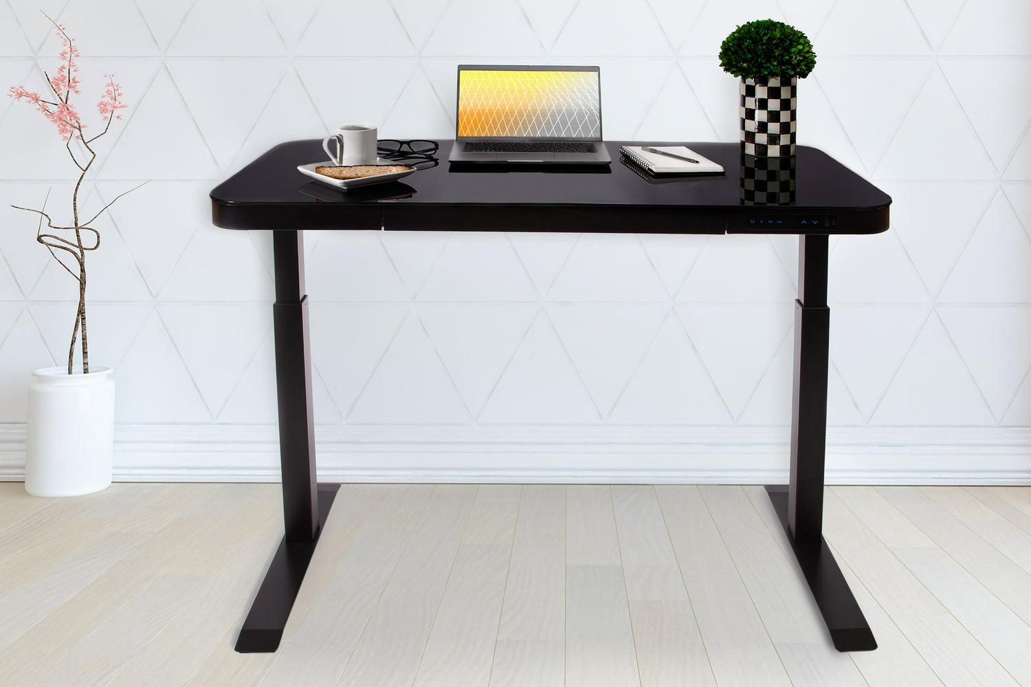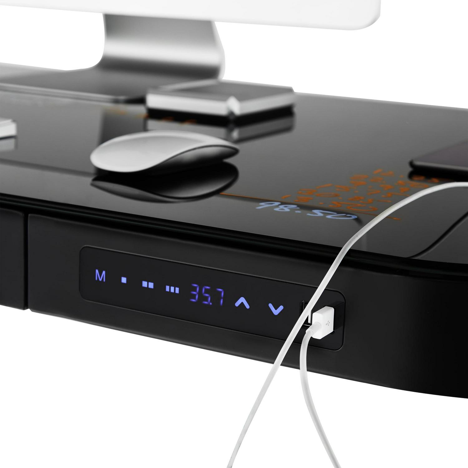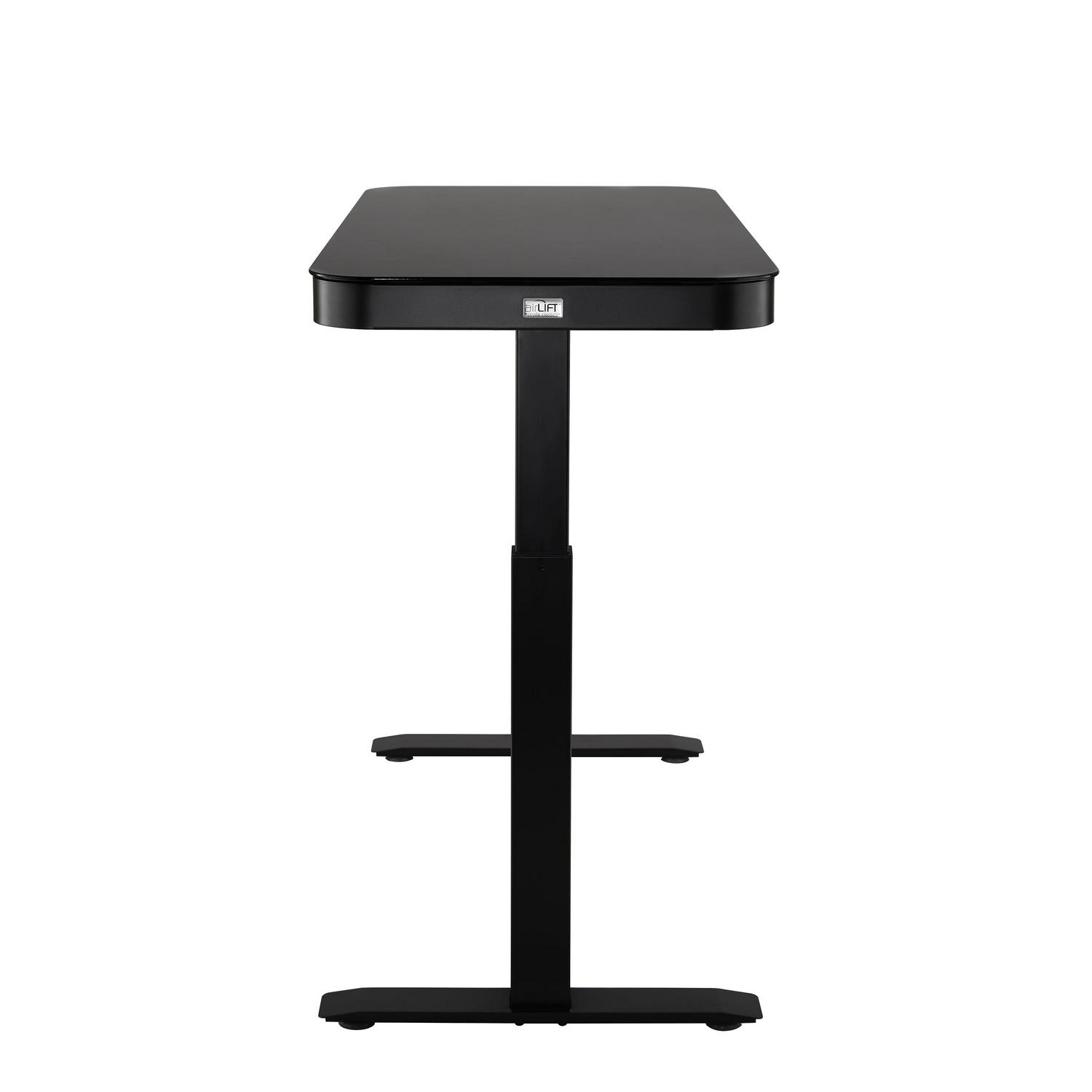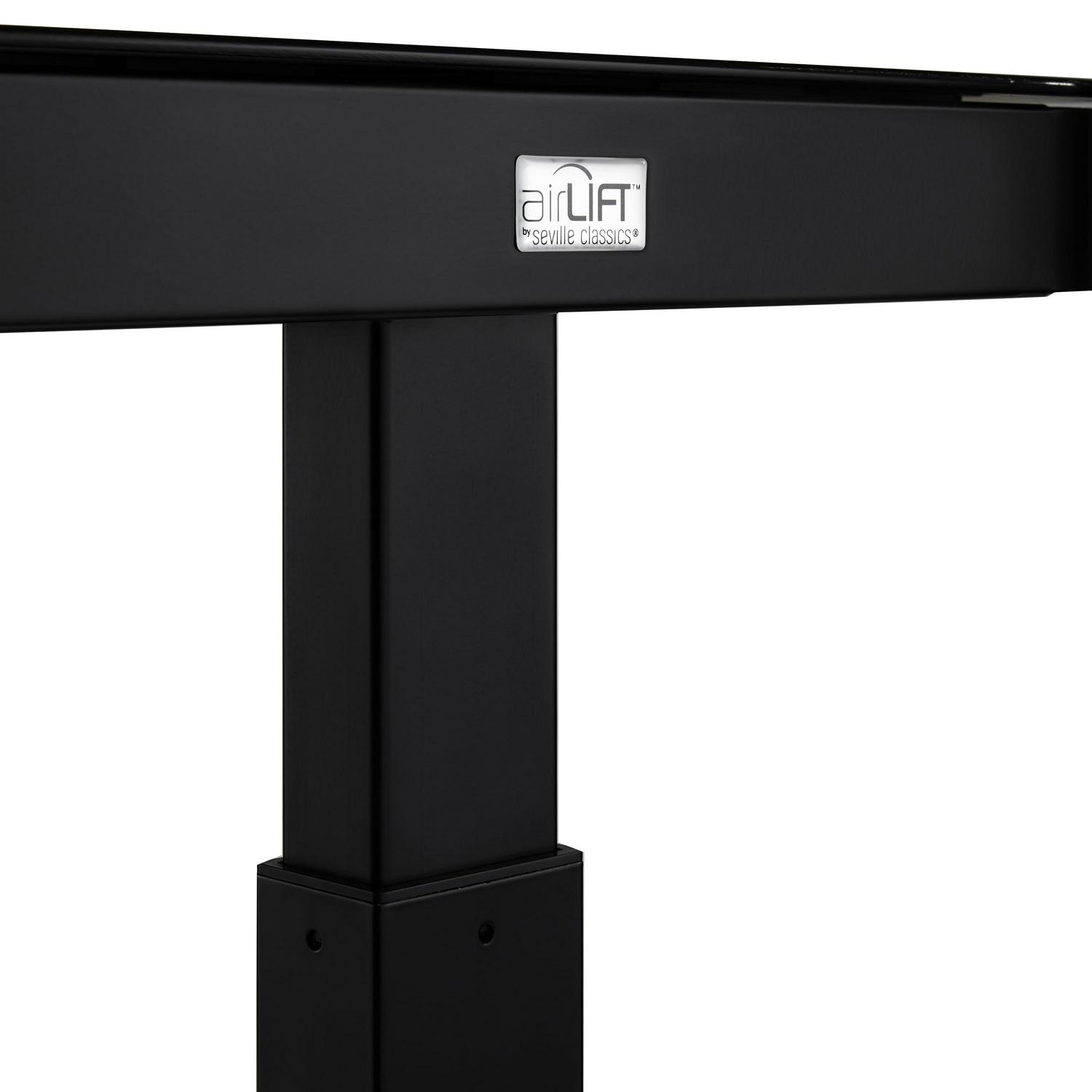Seville Classics AIRLIFT Tempered Glass Electric Standing Desk Dual 2.4A USB Charging Port and 3 Memory Buttons Height Display (Max. Height 47 ) – 3-Section Base, Black with Black Top