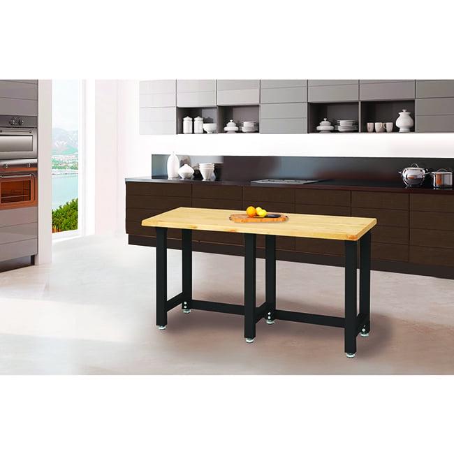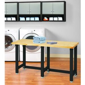 This heavy-duty 72-inch workbench is ideal for any project Commercial grade steel construction Assembly required (wrench and magnetic screw driver included) Stain graphite powder coated frame Assembled Dimensions: 25″ W x 72″ L x 37.5″ H Total weight capacity of 2,000 lbs. (evenly distributed) Includes four rubber padded adjustable leveling feet Magnetic body Recommended for use in any setting from garages, workshops, warehouses, mail rooms, to break rooms 1-Year Limited Manufacturer’s Warranty Model no. UHD20146B