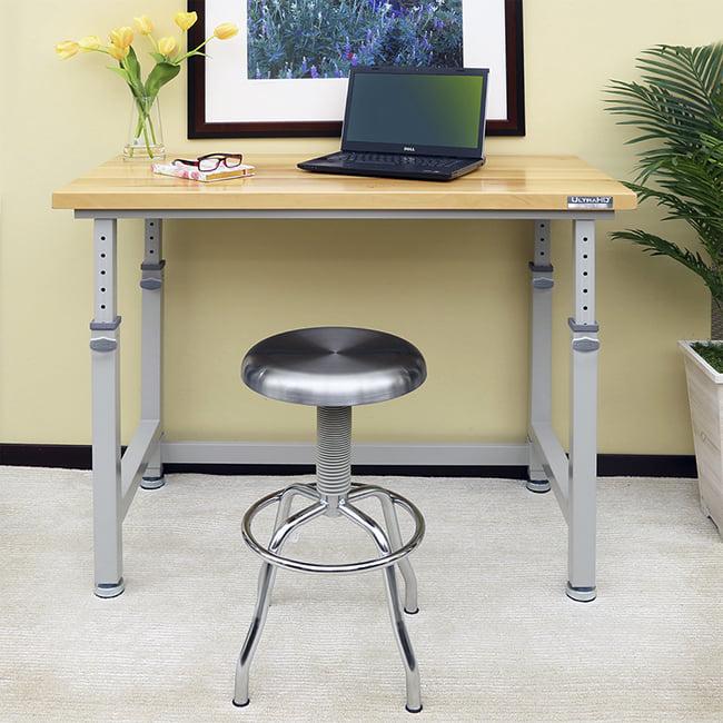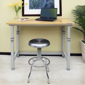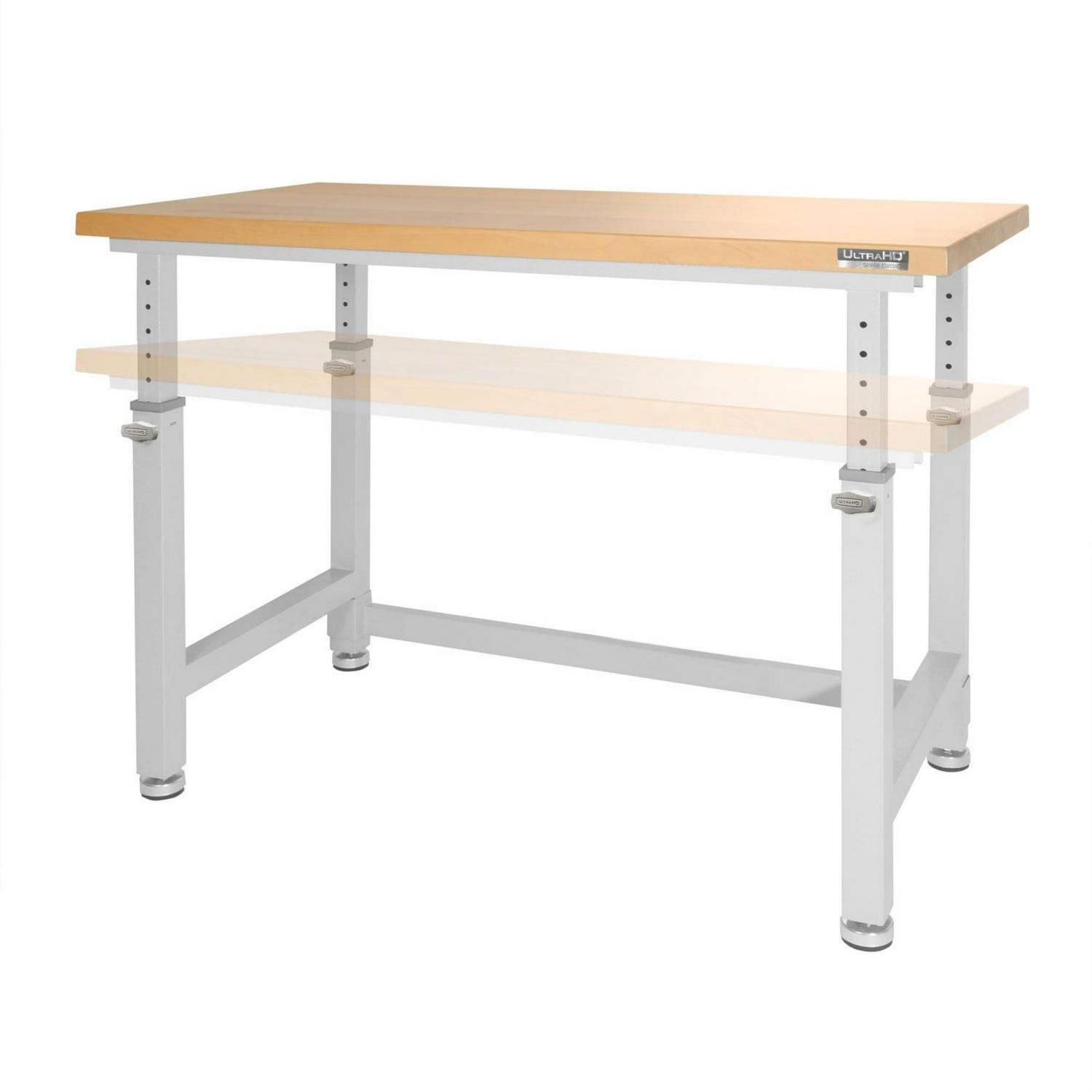Make the most of your workspace with Seville Classics multifunctional and versatile UltraHD Height Adjustable Workbench. Raise and lower the table top manually (requires two people) along the four telescoping legs, locking it into place with the four screw-in locking knobs. The table-top features a thick heavy-duty hardwood work surface that’s sealed with a scratch-resistant coating. Built with industrial-strength steel, the frame is engineered for strength and durability and is protected with a granite epoxy powder-coat. Unit comes with large rubber-padded leveling feet for added stability wherever you are. Designed for multifunctional use, the top measures a convenient 4 feet wide and 2 feet long (48″ x 24″) making it ideal for use in homes, garages, workshops, offices, laundry rooms bedrooms, and kitchens. Take advantage of the 1000 lbs. load capacity to work with heavy-duty projects or for storing heavyweight items. Combine with other Seville Classics UltraHD products to complete your totalsystem Hardwood 1 5″ thick table top with scratch-resistant coat Height adjustable at 1-inch increments with four locking knobs requires two people Industrial-strength steel frame with granite epoxy powder-coat Includes thick rubber-padded leveling feet Easy assembly ideal for commercial home and office environments. Dimensions 48″ W x 24″ D x (28″ to 42″) H Adjustment. Type manual screw-in locking knobs. Weight Capacity 1000 lbs. Weight 75 90 lbs. Model # UHD20288B