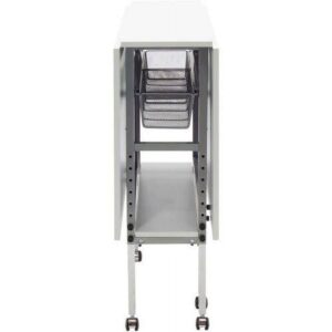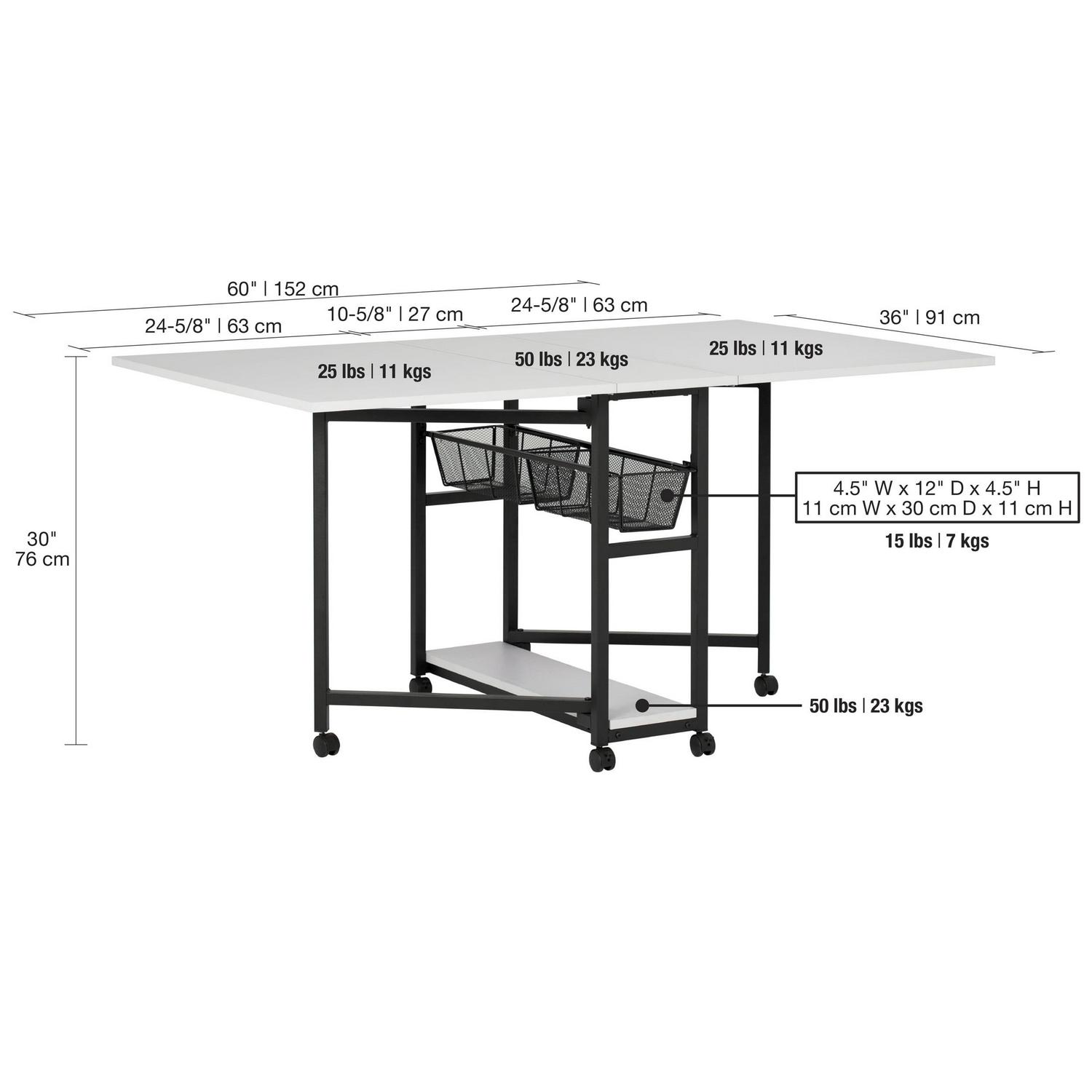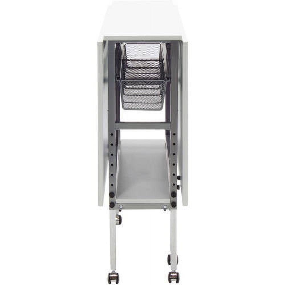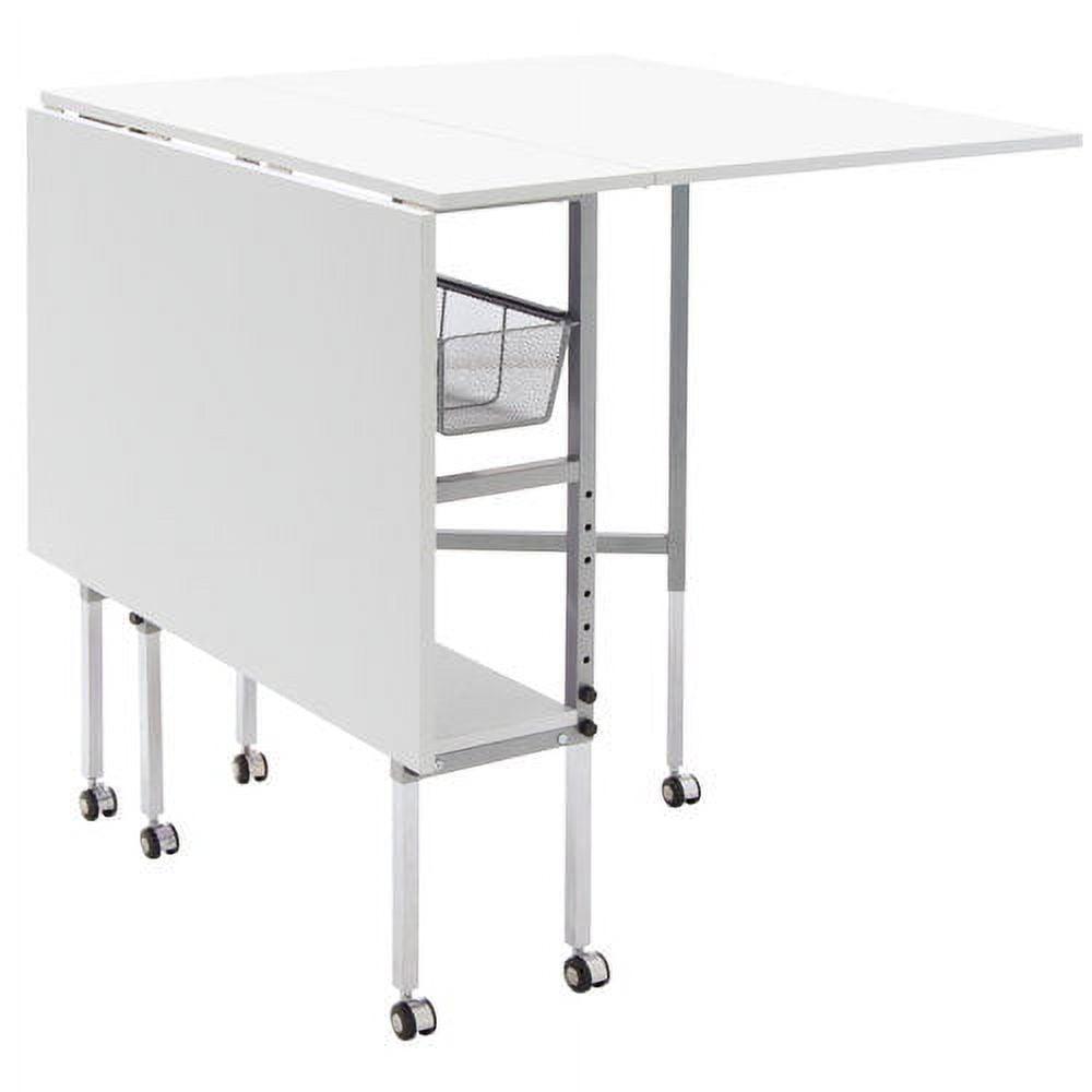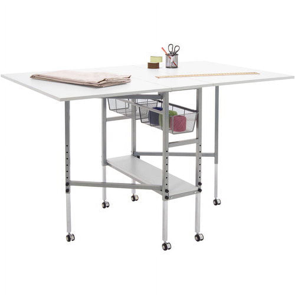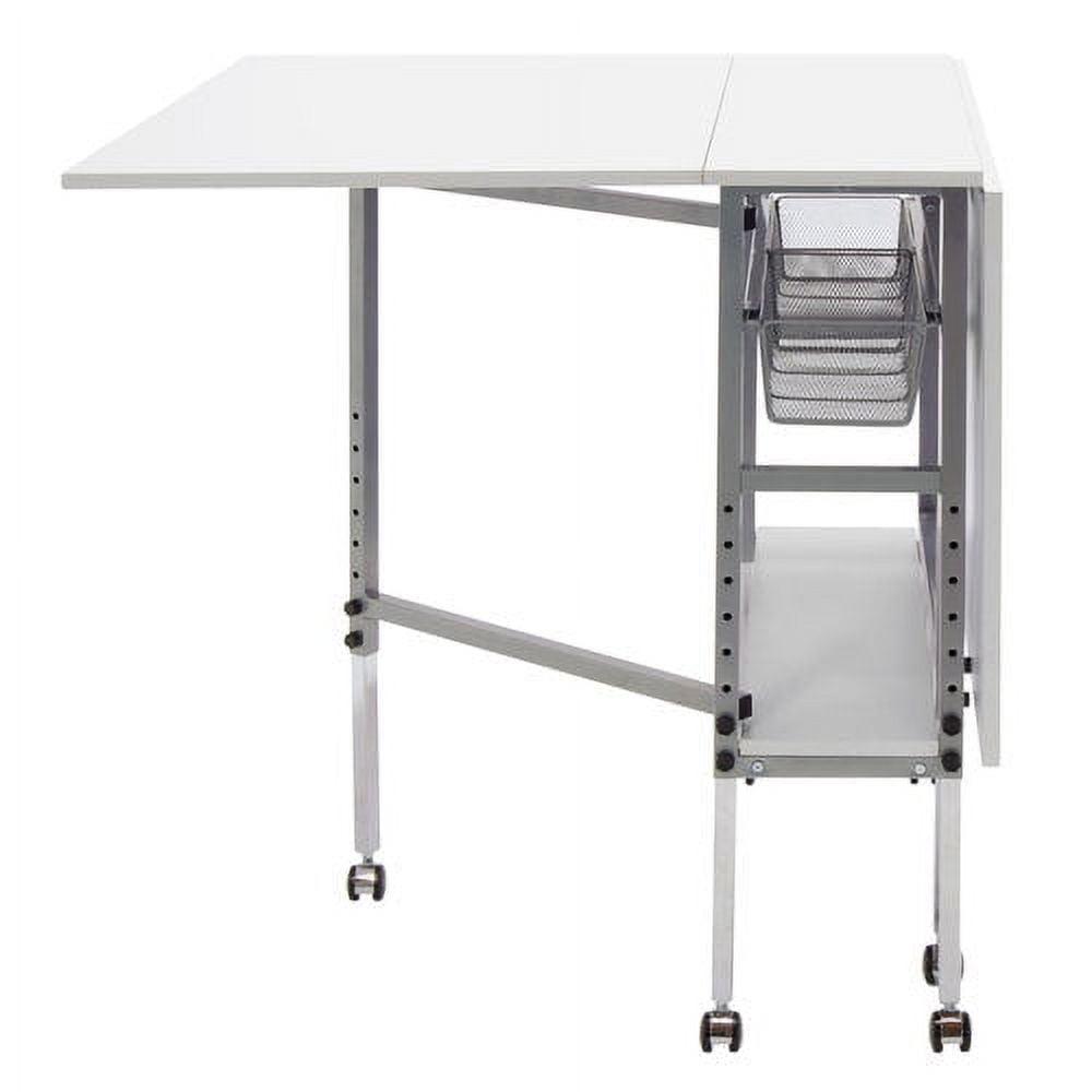 Sew Ready Folding Hobby and Fabric Cutting Table with Storage Silver Metal Frame and White Top