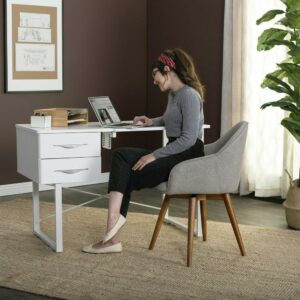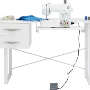 Sew Ready Pro Line Craft, Sewing, and Office Desk with 2 Drawers in White: