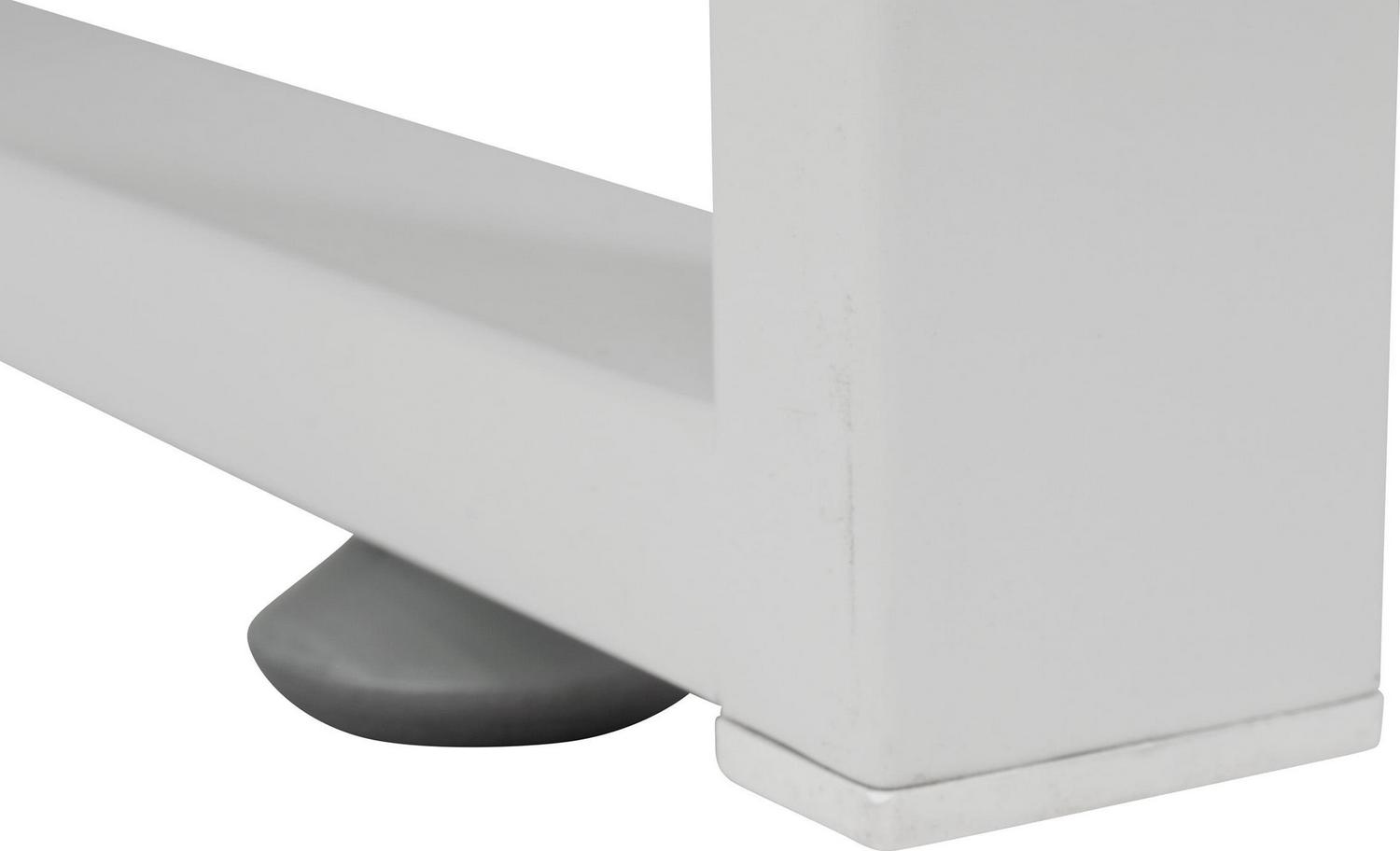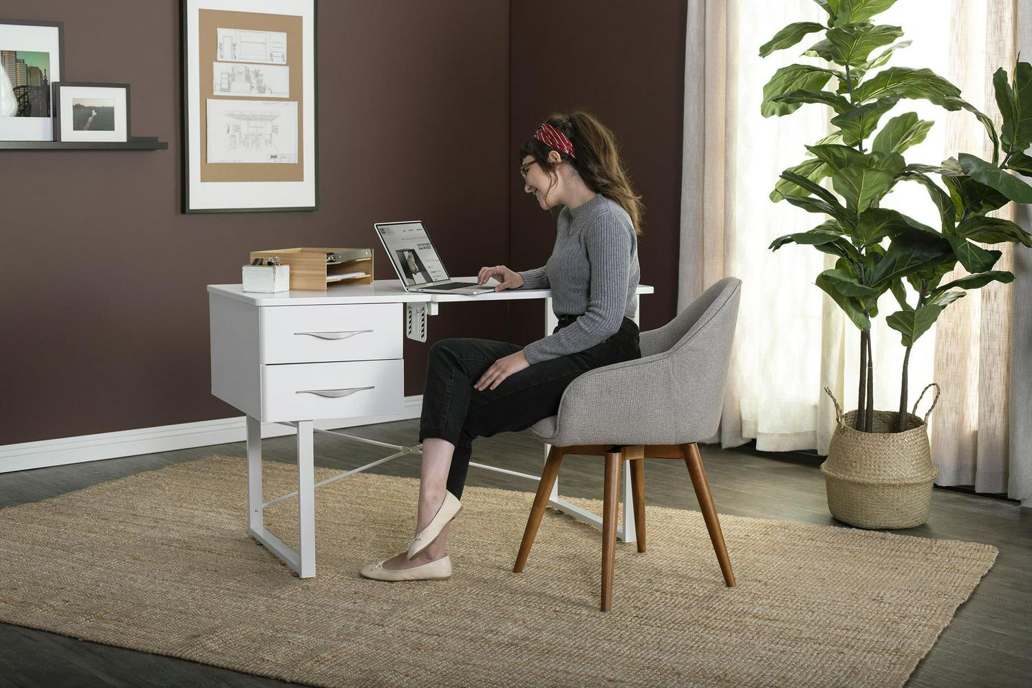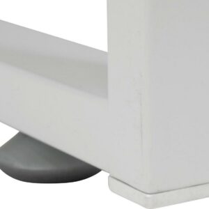 The fresh and chic style of the Pro-Line Craft, Sewing, and Office Desk with 2 Drawers make it a smart addition to your craft room or home office. The sheen UV-coated finish protects the surface and allows the fabric to slide easily across the surface. The two full-extension drawers are 13″ deep x 12.5″ wide x 4″ high (inside dimensions) for storing your supplies. The 23″ wide x 10.75″ deep sewing machine platform can adjust to six positions, so the base of your sewing machine is flush with the tabletop. The powder-coated finish on the steel frame resists scratching while the crossbars and floor levelers keep the desk stable.