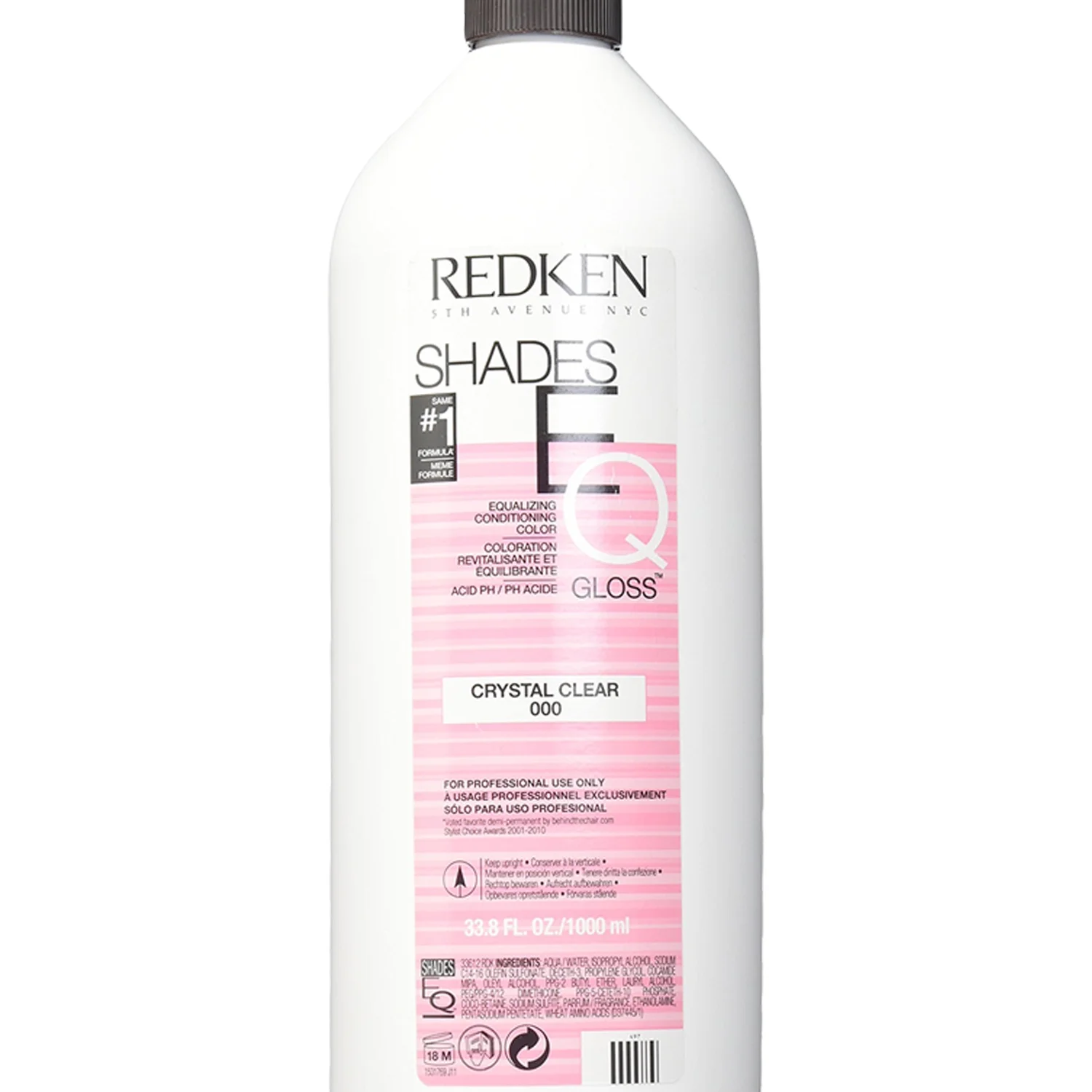 What is this product? SHADES EQ CRYSTAL CLEAR Shades EQ Equalizing Conditioning Crystal Clear is the unpigmented version of the Color Glosses that lets you create an infinite array of shade results. More info: This product has to be mixed with equal parts of Shades EQ Processing Solution to add incredible shine without adding color to natural or color-treated hair. Shades EQ Equalizing Conditioning Crystal Clear can also be added to any of the other Color Glosses to dilute color intensity. Gentle, no-lift formula guarantees healthy, shiny, amazing haircolor. Wheat amino acids lock in moisture for incredible conditioning while silicone improves shine. Product Options Available are as follows: Size : 33.8 oz / liter – Redken Shades EQ Color Gloss – Crystal Clear 000; 4.421