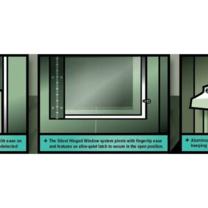 – Interior plexiglass uses a silent track and draw cord for soundless operation