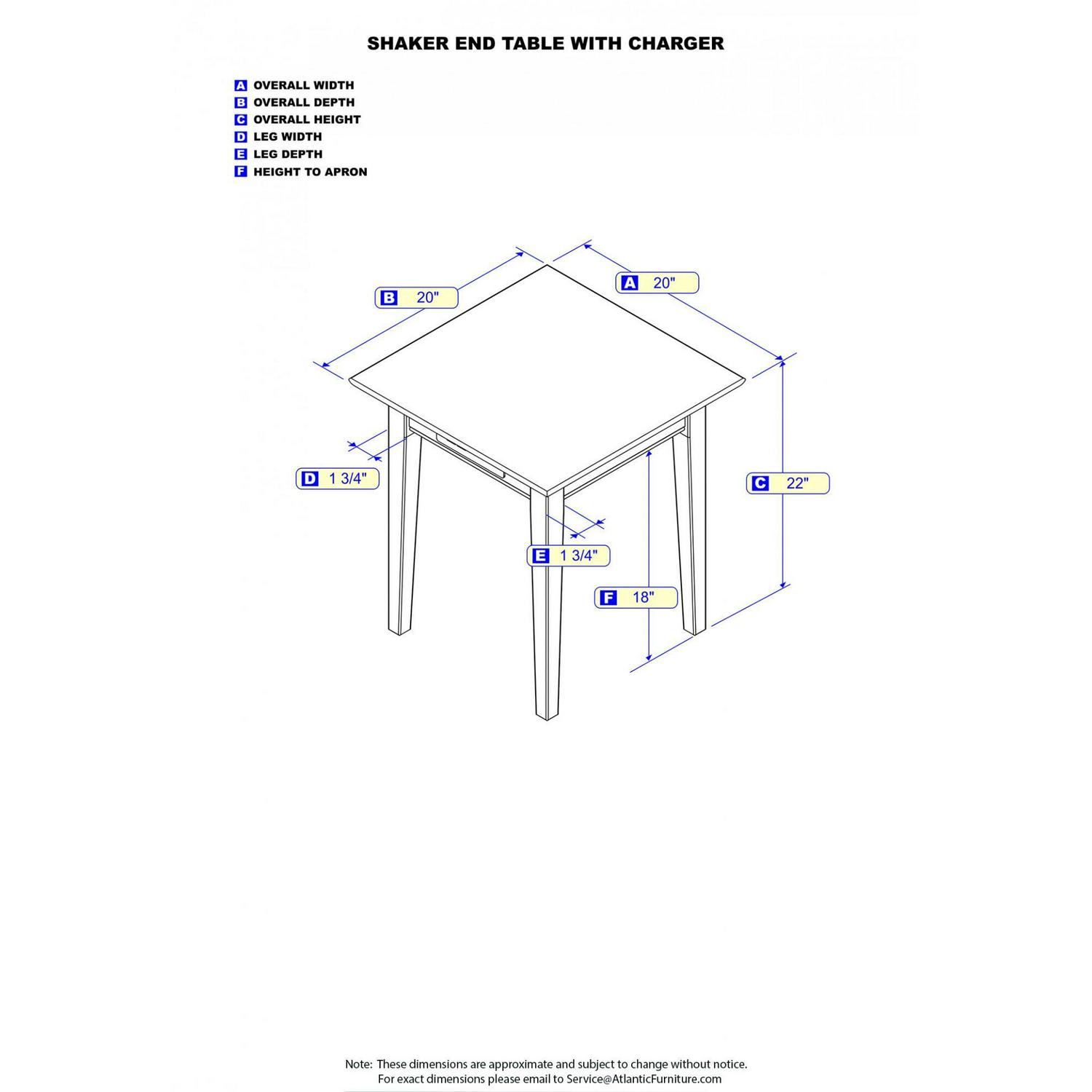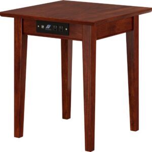 Shaker-inspired design brings a sophisticated functionality to your living space. This classic style, constructed from solid, eco-friendly hardwood, is available with two high-efficiency USB charging ports and two 110-volt power outlets for your convenience. We created these tables to perfectly accent your couch or living room chair, and fashioned them with care and craftsmanship to stand the test of time through sturdy leg assembly and a durable high build five-step finish. Invest in classic elegance you ll enjoy for years to come.