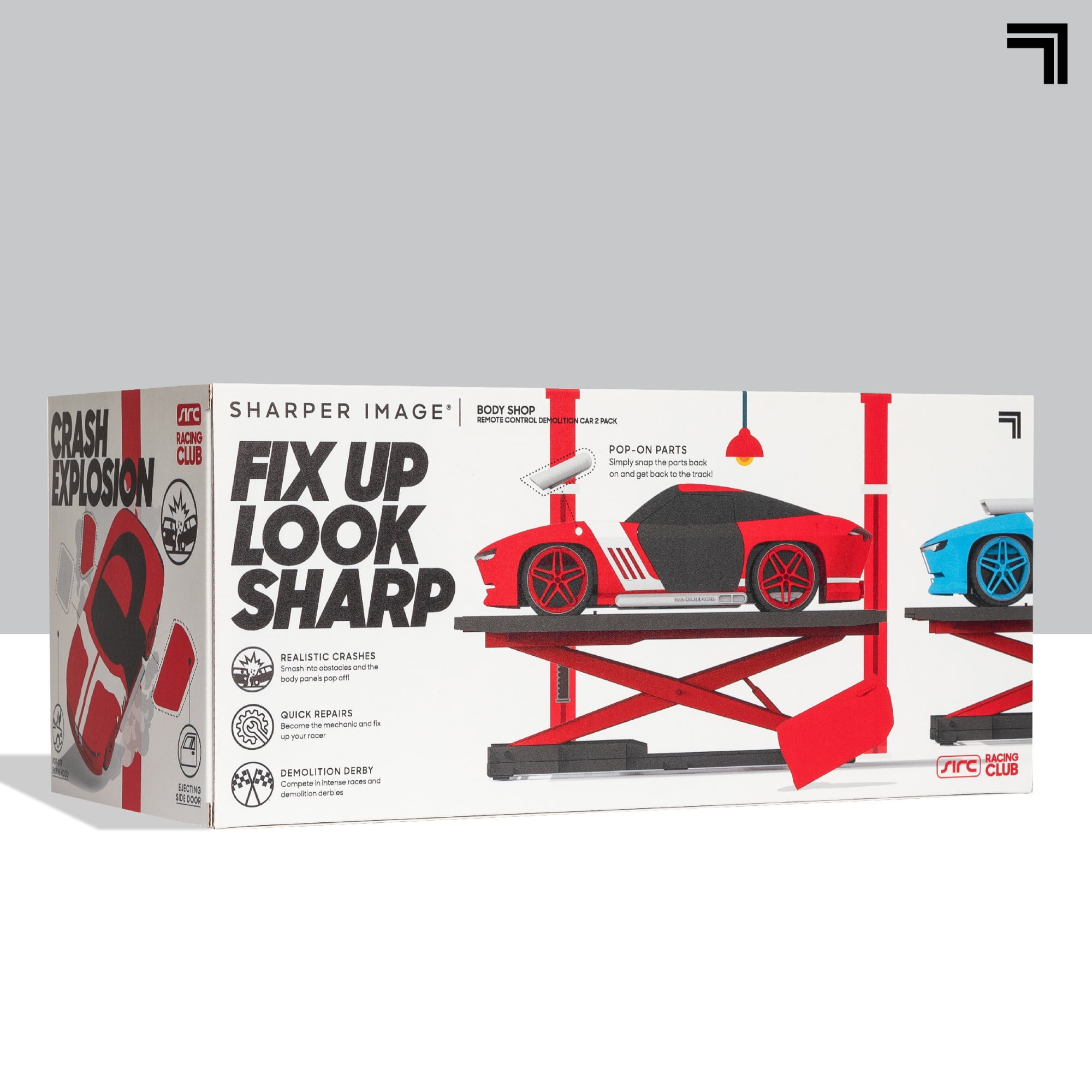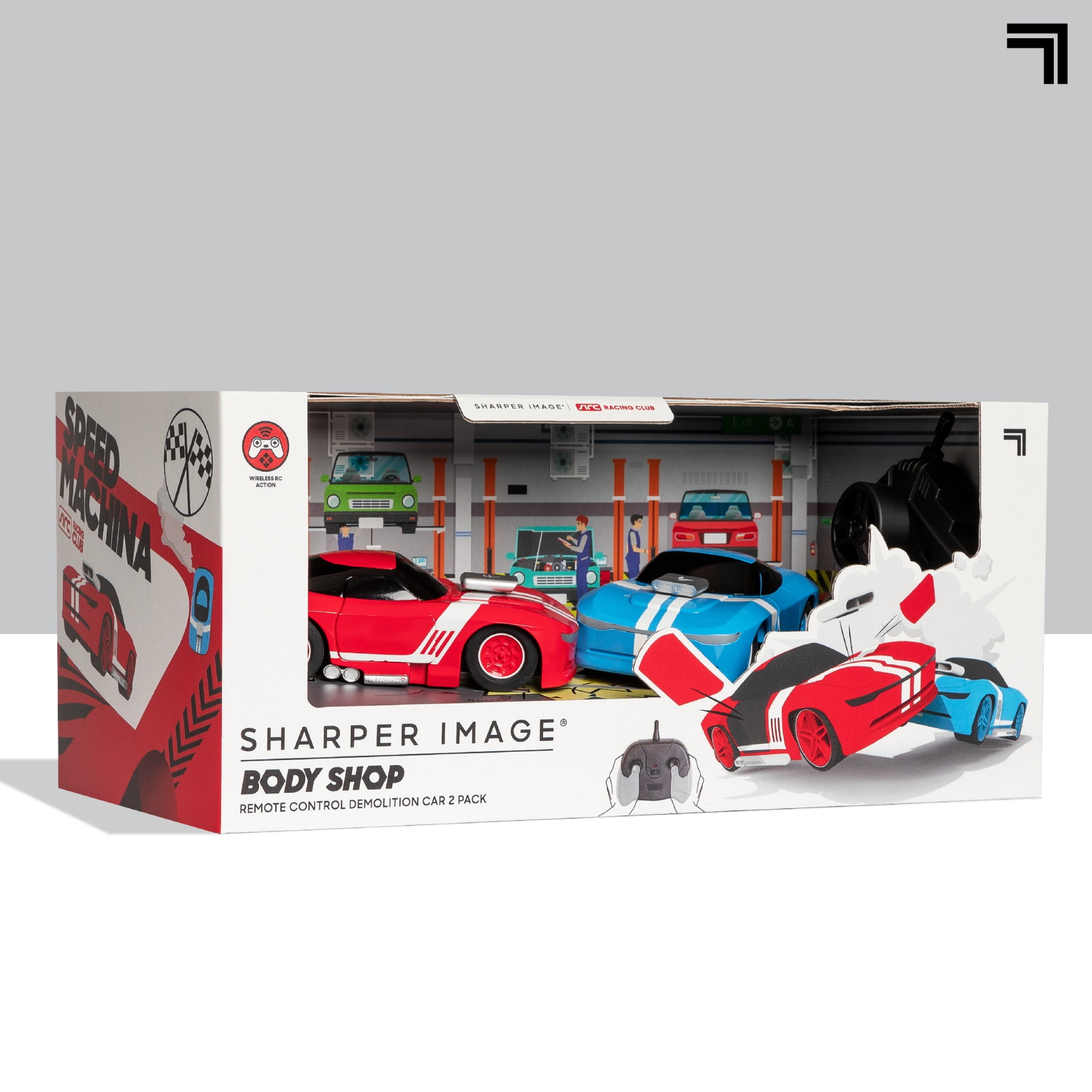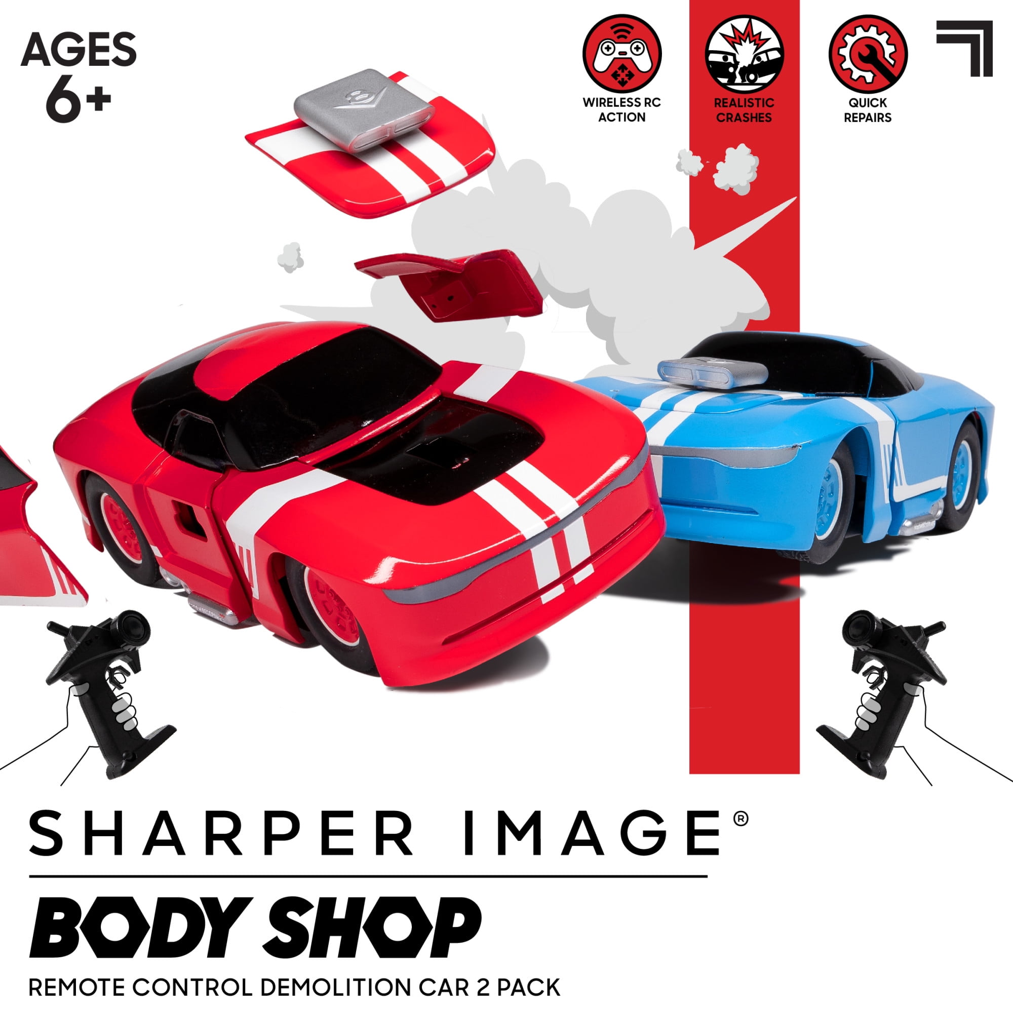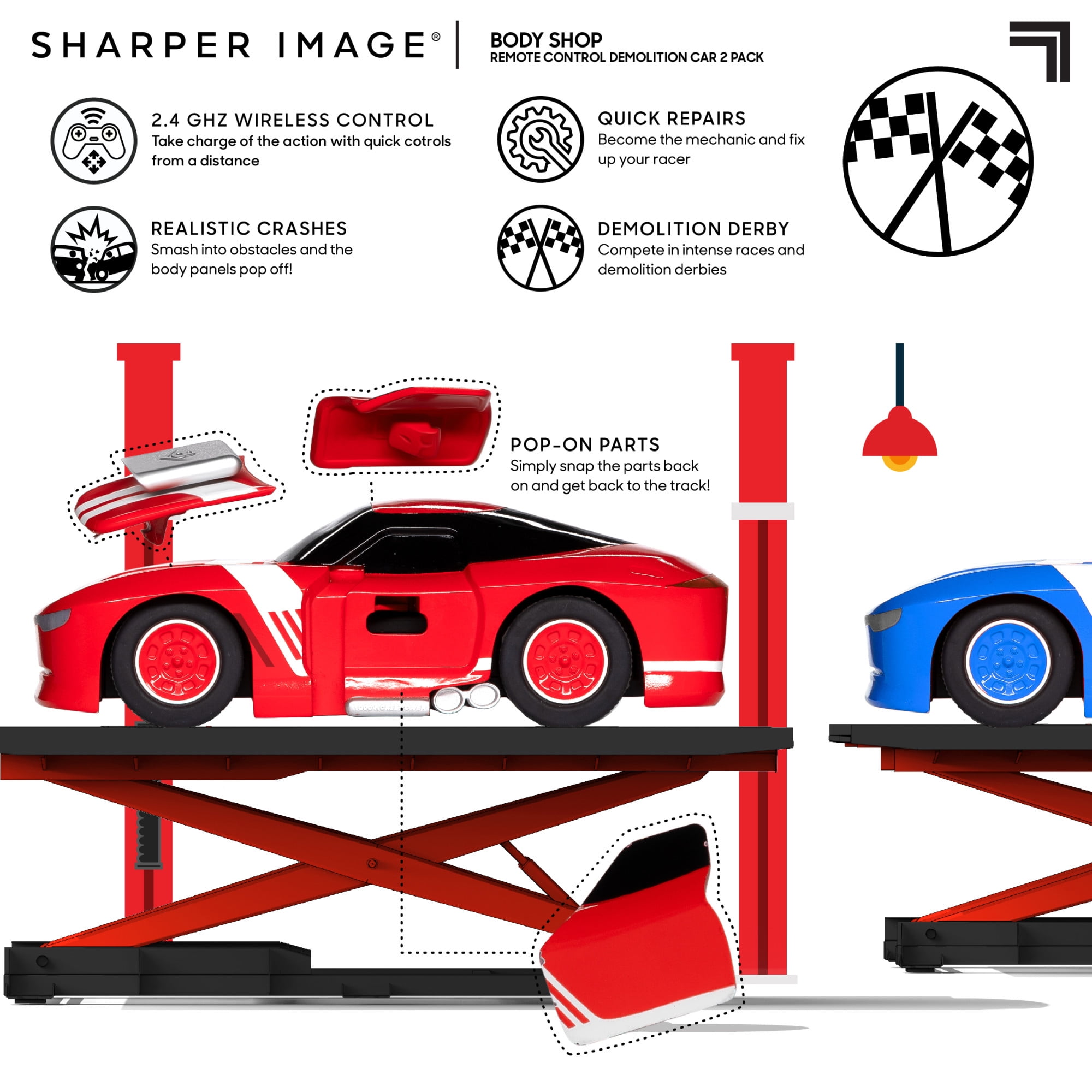 Sharper Image® Toy RC Body Shop Remote Control Demolition Car 2 Pack with Pop-on Parts, 2.4 GHz Long Range Wireless Control, Blue/Red, Age 6+