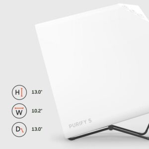 – VERSATILE DESIGN: PURIFY 5 covers small rooms (up to 95 sq. feet). Simply flip the base over to change the purifier’s position from a vertical stance to an angled stance.