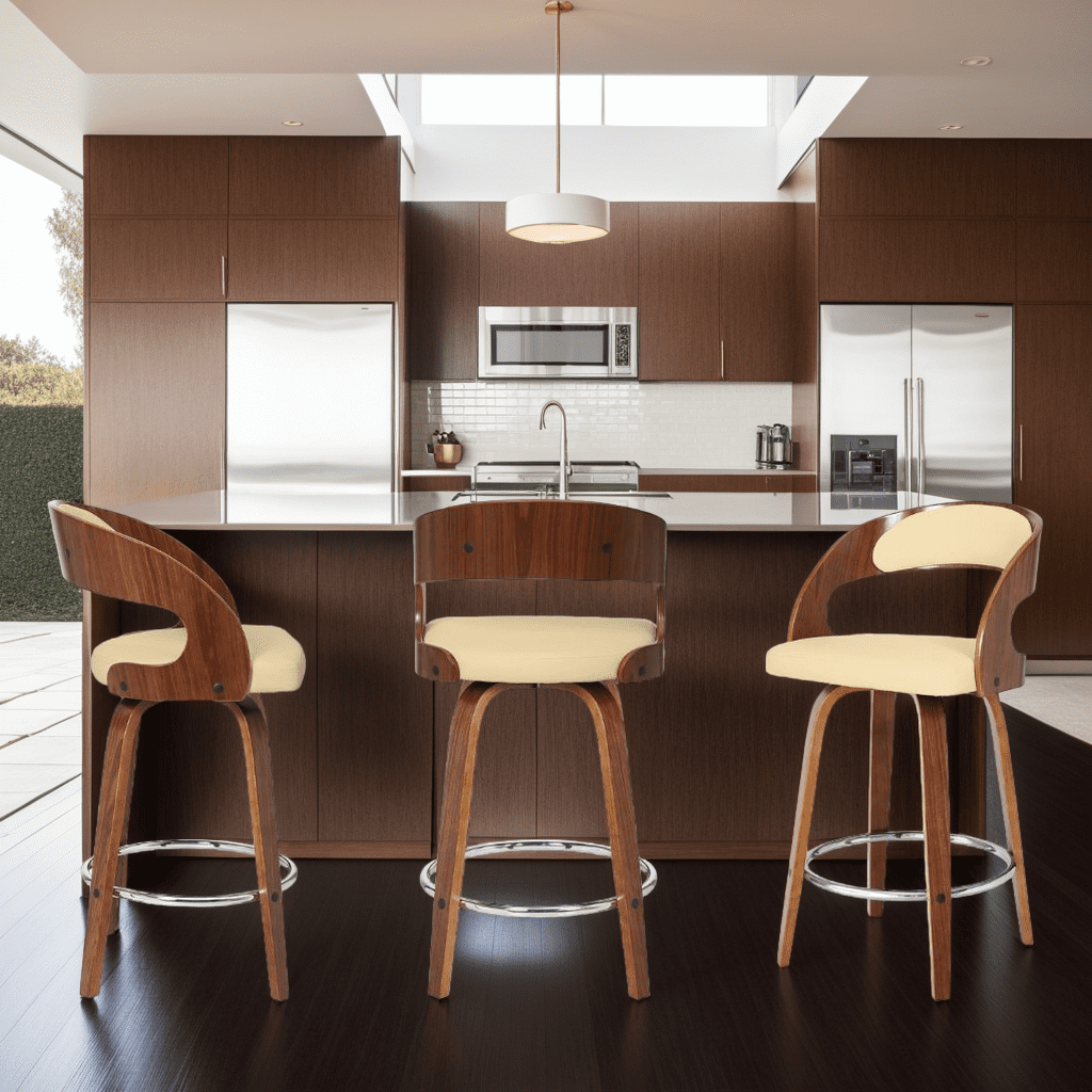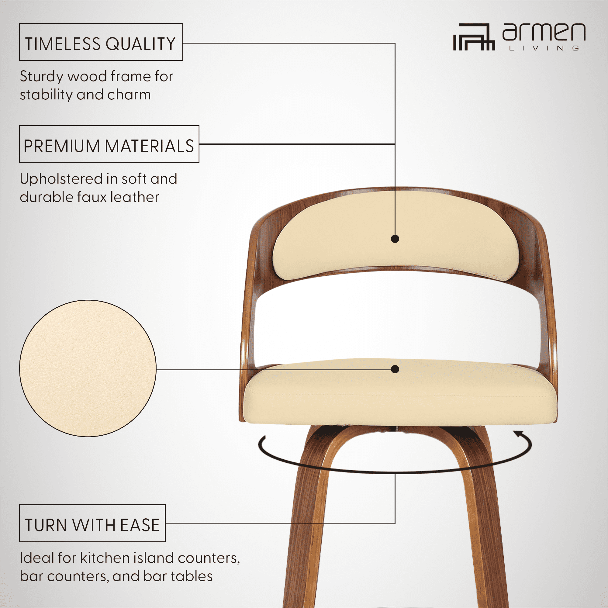 Shelly 26″ Counter Height Swivel Cream Faux Leather and Walnut Wood Bar Stool