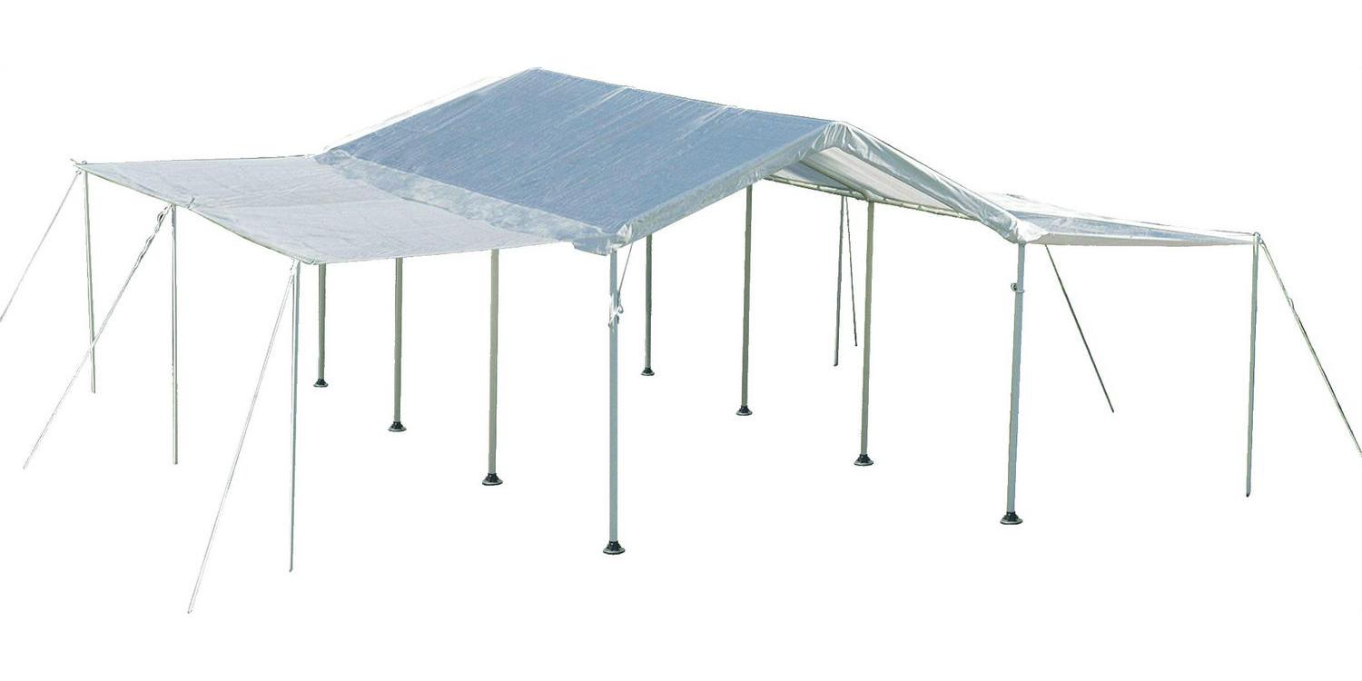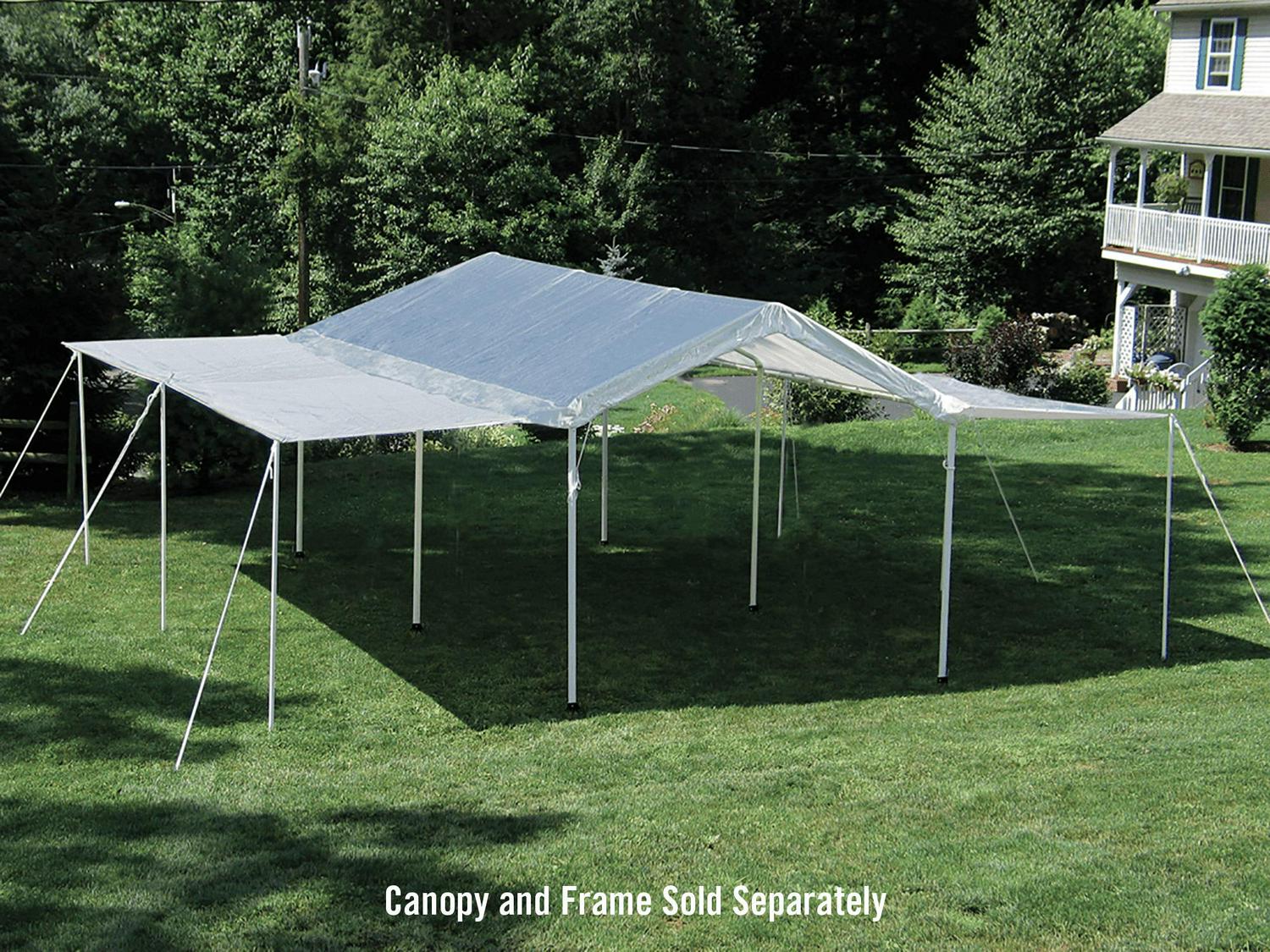 the shelterlogic 10 x 20 ft. maxap canopy extension kit is the quick and affordable solution for special events and seasonal protection. quickly convert any 20 ft. long canopy to a fully covered event tent, single or double wall wind break in minutes. constructed of ripstop woven polytheylene fabric with added uv protection, fade blockers, anti-aging, anti-yellowing and anti-microbial agents. comes ready to install out of the box with steel tent poles and tie downs. expands coverage by 280 square feet of protection. this unit is the extension kit only. the canopy frame and top are sold separately.