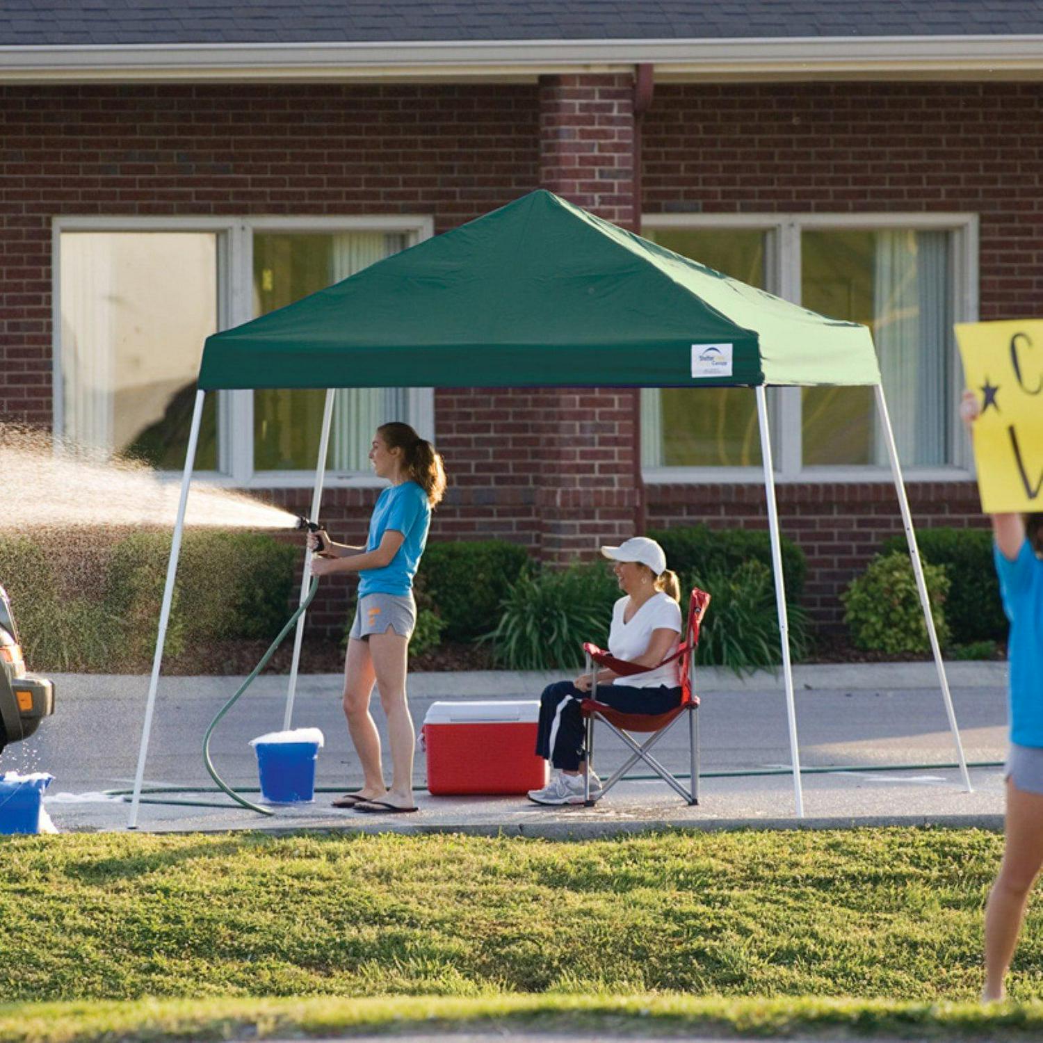 The ShelterLogic 10×10 Sport Pop-Up comes fully assembled for ready to go anytime, anywhere shade and protection. Quick portable shade as easy as 1,2,3. Simply remove the frame from the bag, pull the legs out, attach cover and enjoy. Display your goods or protect your guests with our most popular frame sized Pop-Up. Quality features, heavy duty frame and cover design and great value come standard. The perfect shade solution for sporting events, backyard events, tailgating, camping or commercial use.- SKU: SHLTL056
