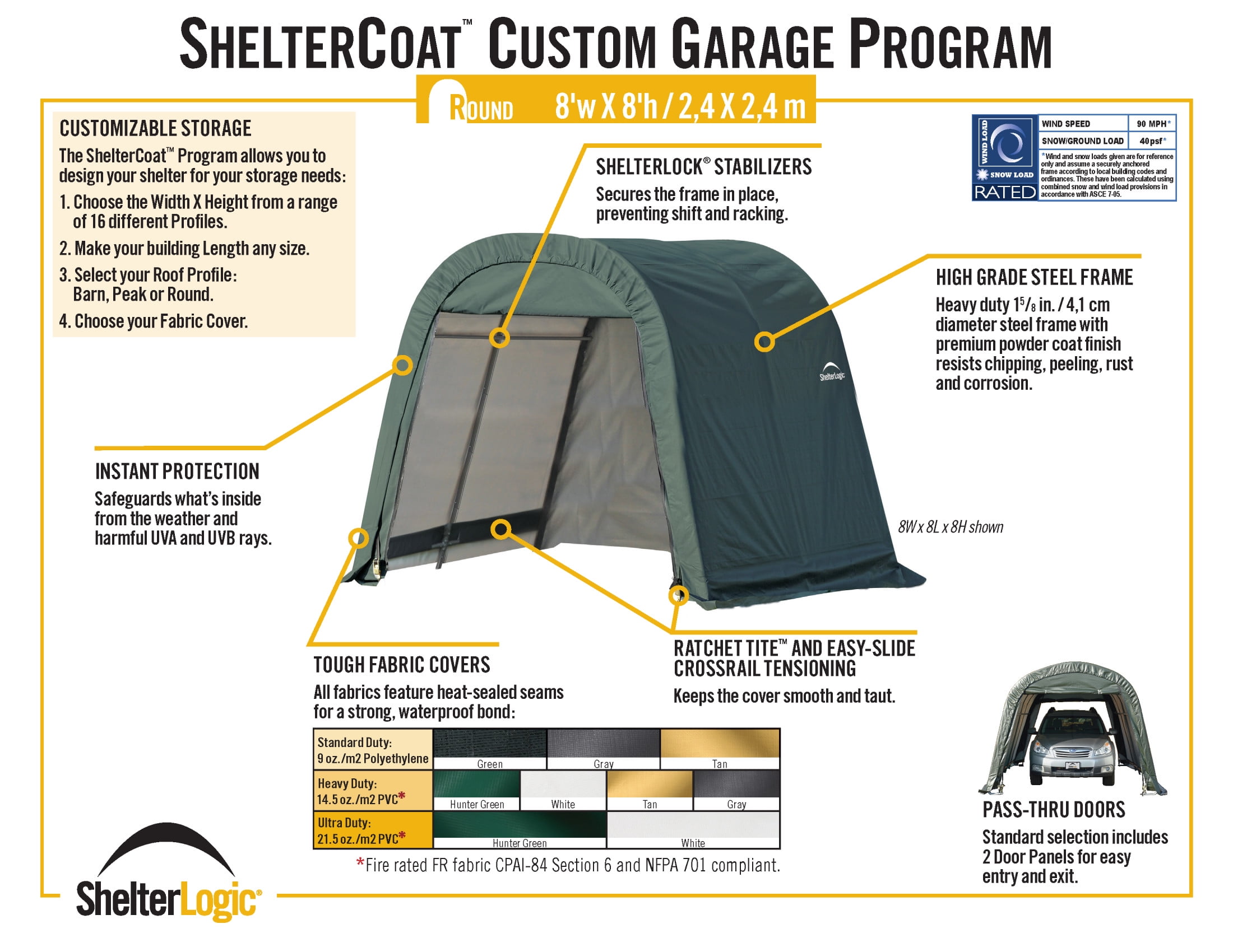 The Round shelters are a great way to store your trucks, cars, SUVs, trailers and other bulk items. Try the shelter series to protect your investments against the elements.