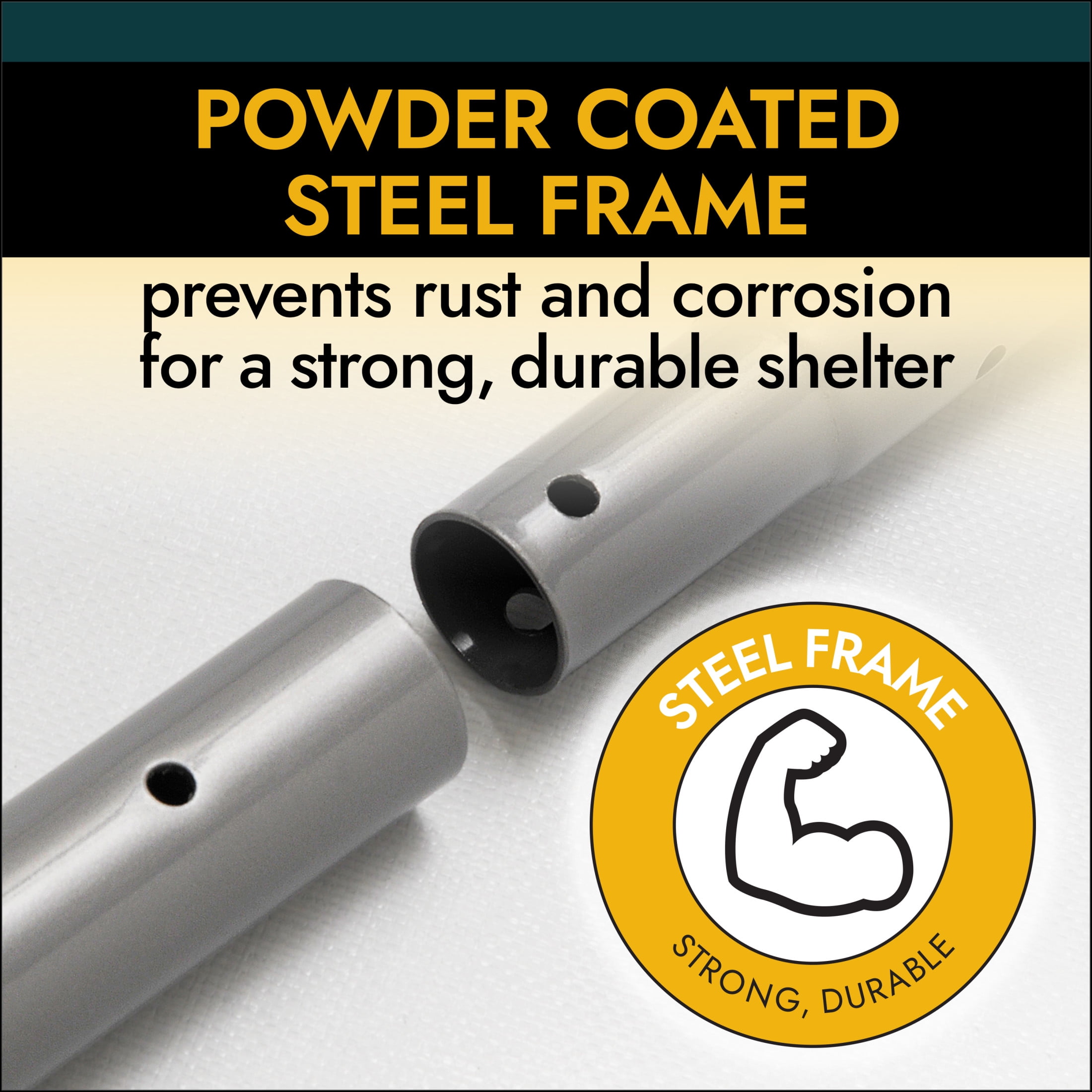 - Patent pending Shelter Lock stabilizer block at every rib connection adds rock solid strength and stability to frame.