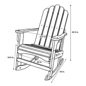 Relax in the beautiful outdoors in your very own Marina Adirondack Porch Rocker from Shine Company. Constructed strong enough to withstand the elements without sacrificing the classic look you love, this rocker has straight, clean lines with a solid back support making it the perfect accent piece to any front porch, walkway, garden, or deck.