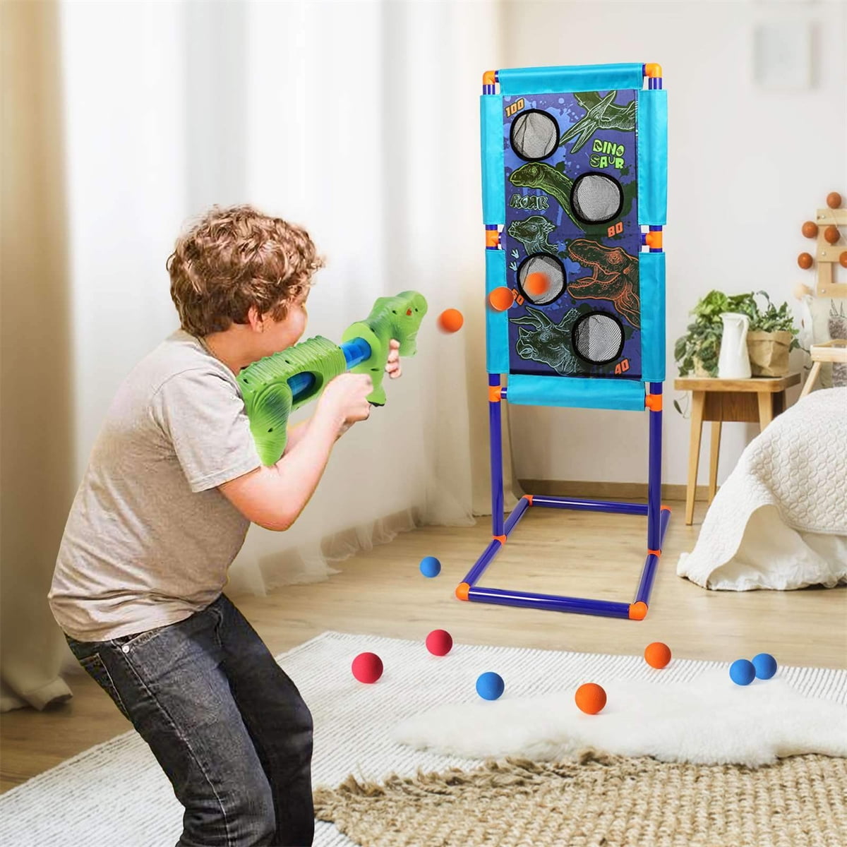Description: Dinosaur Shooting Game Toy – Kids Dinosaur Shooting Target for 5 6 7 8 9 10+ Years Old Boys & Girls, 2 Foam Ball Popper Air Guns Indoor Activity Game Compatible with Toy Gun Toys Gift for Kids, boys toys age 6-8, boys toys age 8-10 best seller, dinosaur toys for kids 5-7, 6 year old boy gifts, dinosaur toys for kids 3-5, Toy guns for toddlers age 3-5, dinosaur toys Features: SUPER FUN DINOSAUR TOYS FOR KIDS 3-5-7-8-12: These two foam ball blasters don’t just rocket projectiles across the room – they’re also shaped like dinosaurs. Start firing foam balls through the dinosaurs’ jaws, and kick off endless hours of entertainment. INCLUDES STANDING TARGET: When you’re not playing battle or tag, you can set up the included standing target, which has four point holes to score in. With two guns, two people (or two teams) can compete for the title of blaster champion. PLENTY OF BALLS: These dinosaur guns come with 30 foam balls in a variety of colors – 10 red, 10 blue, and 10 yellow. In a two-player game, that’s 15 balls per person, letting you easily keep track of who’s scoring how many points. SAFE FOR KIDS: Even though these pop gun can shoot a ball pretty far, they don’t shoot hard enough to hurt anyone who might accidentally get in the way. The foam balls are lightweight, so you don’t have to worry about anyone getting hurt while playing. BEST GIFT EVER: Any kid is sure to love these foam ball blasters as a gift, whether it’s for a dinosaur party, birthday or the holidays. Plus, you’re backed by our 100% satisfaction guarantee – either your kids love it, or we’ll give you a full refund. Specification: Theme: Dinosaur Material: Acrylonitrile Butadiene Styrene Color: Blue, Green Cartoon Character: Dinosaur