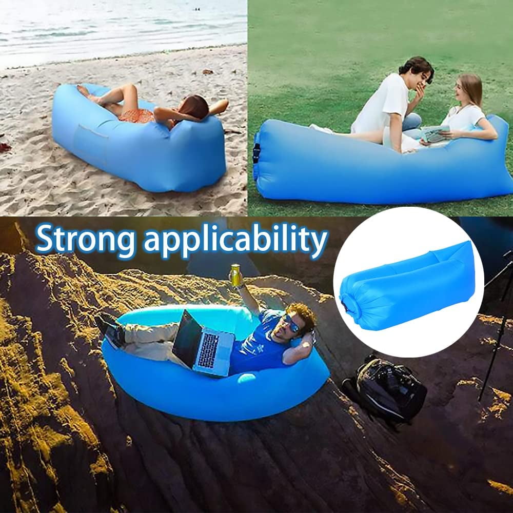 EASY TO INFLATE:all you need to do is unroll it, stir several times in the air, roll it, and snap it closed. It’s that easy and you get a very comfortable chaise lounge. No pump needed. SIUTABLE FOR INDOOR AND OUTDOOR:as a great new inflatable couch, chaise lounge, beach chair, lawn chair, camping chair and it can even replace your bean bag and hammock. specially suitable for outdoor BBQ, parks, backyard. UNIQUE HEADREST DESIGN:Our Unique Ergonomic Neck Pillow headrest of air lounger allows you to relax with maximum comfort. ANTI-DEFLATION TECHNOLOGY:The Inflatable lounger are made of high-quality polyester fiber and high strength PE inner bag, Thick and durable design, dual layers fabric construction to create a air leak resistant.It will stay inflated for at least 7-8 hours for you to enjoy your outdoor camping. FUN GIFTS:Give this fun and useful lounger as a gift to just about anyone. It is an especially great gift for those who enjoy outdoor activities, like to travel, or are preparing for fun summer events. No pump required!|Strong applicability|Quick inflation|Amphibious|Scratch-resistant, and wear-resistant|440 lbs load bearing