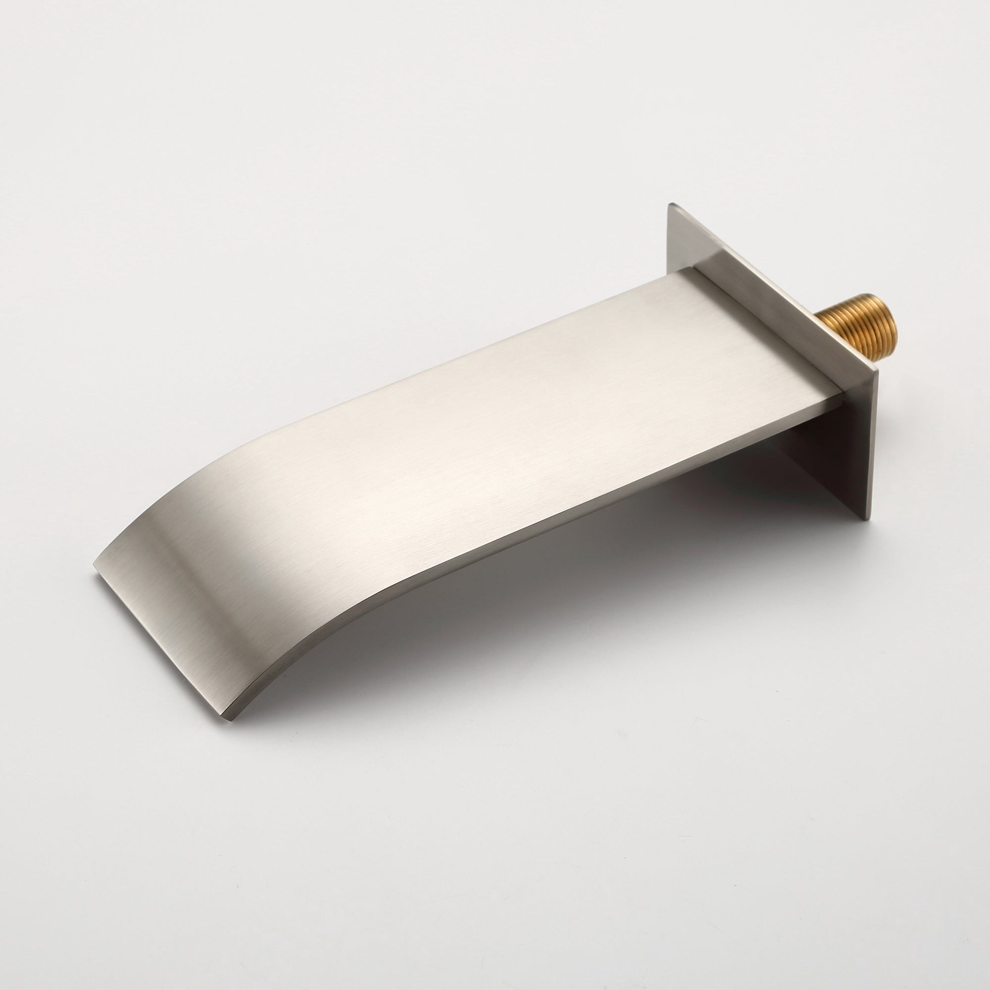 With the thickened solid brass cast valve and anti-scalding pressure balance cartridge, this tub shower faucet especially designed for American users! The tub and shower system includes: square rain shower, handheld shower head, shower arm, shower hose?shower elbow with holder, shower mixer control valve, tub spout. Trim and all parts of this tub faucet set are constructed of metal, ensures durability and providing aesthetic appeal. This shower system has three modes: waterfall tub spout, rain shower head and hand wand, which could easily switch by turning the square knob on the valve. The lever handle easily adjust the hot/cold water flow and temperature.This shower set features a wide waterfall spout with large water flow (4.17GPM at 60PSI)to quickly fill your bathtub. The American standard NPT1/2 connector is compatible with most existing shower systems’ pipes,for saving man-hour cost during installing. Even at low water flow, the use of ultra-thin rain shower head offers high water pressure. Rain shower head and hand wand with touch clean soft, rubber nubbins (spray holes) that allow you to easily wipe away calcium and lime build-up with the touch of a finger. This is particularly helpful for areas with hard water. Transform your bathroom into a modern masterpiece with this sumerain tub and shower system! A C-UPC certificated pressure balancing rough-in valve prevents scalding while m