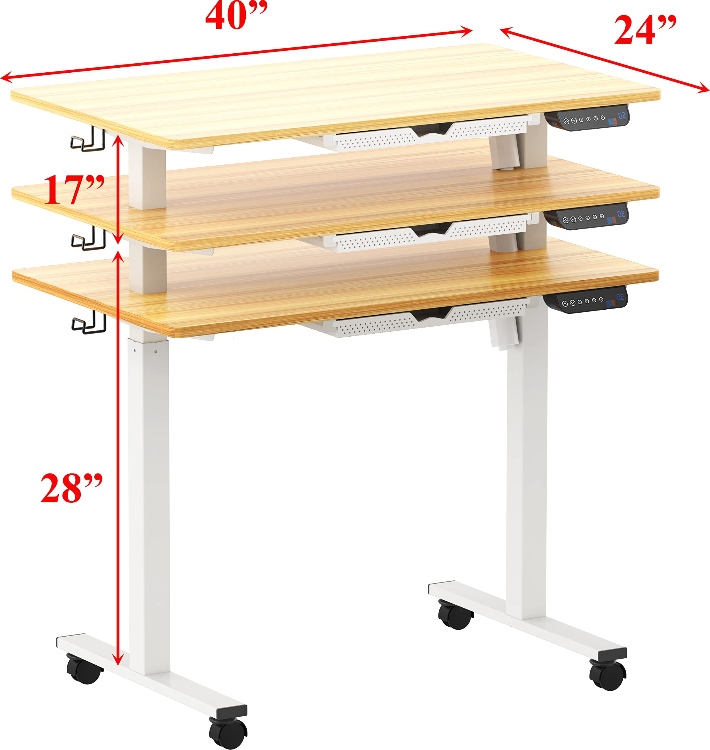 SHW 40-Inch Electric Height Adjustable Mobile Sit Stand Desk with Drawer, Hanging Hooks and Cable Management, Oak Brand: SHW Color: Oak Material: Metal, Engineered Wood Special Feature: Height Adjustable, 4 Memory Preset Options, Mobile Dimension: 40″ W x 24″ D x 28-45″ H Quantity: 1