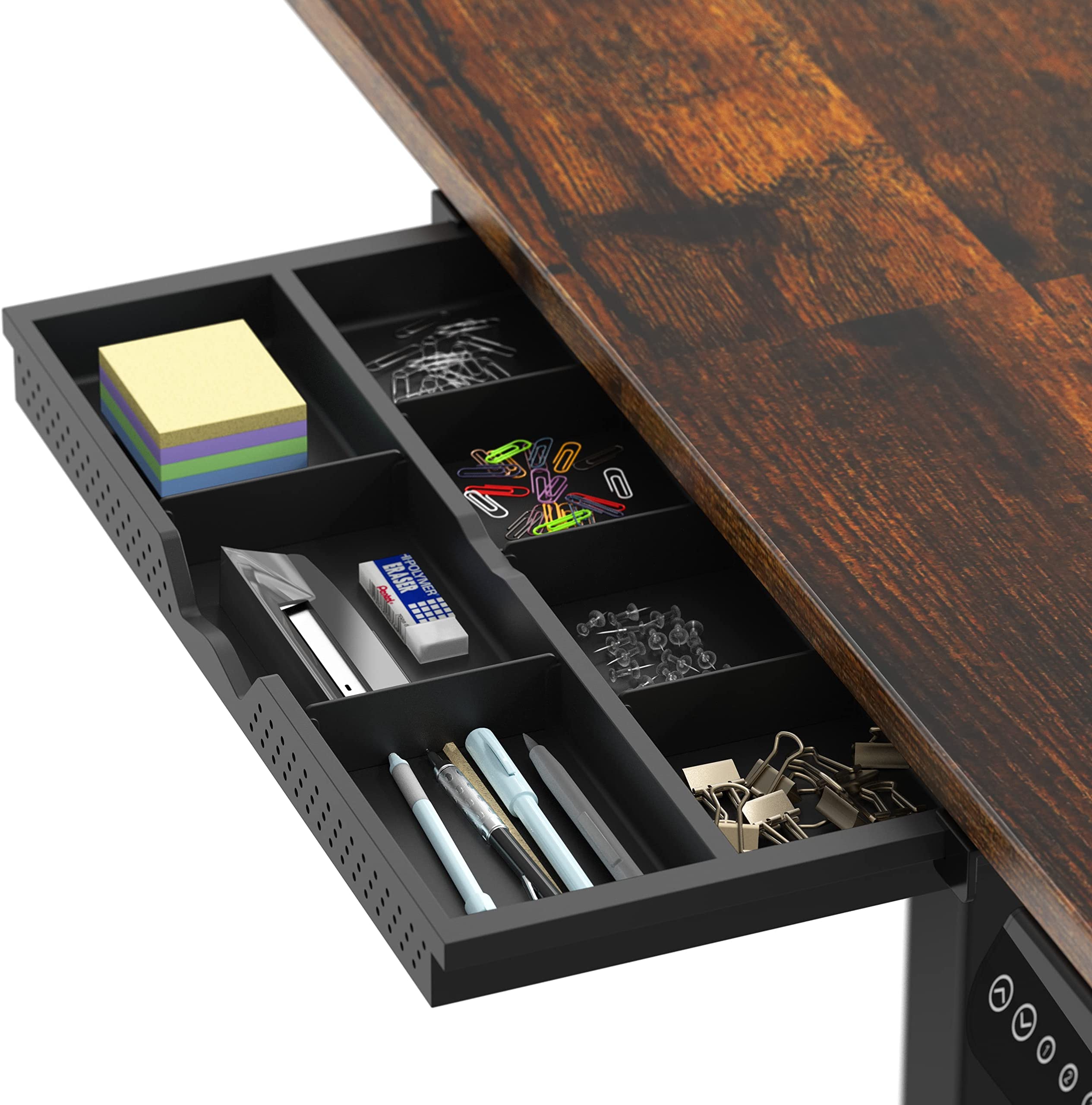 SHW Electric Height Adjustable Desk with Drawer and Hooks, Rustic Brown