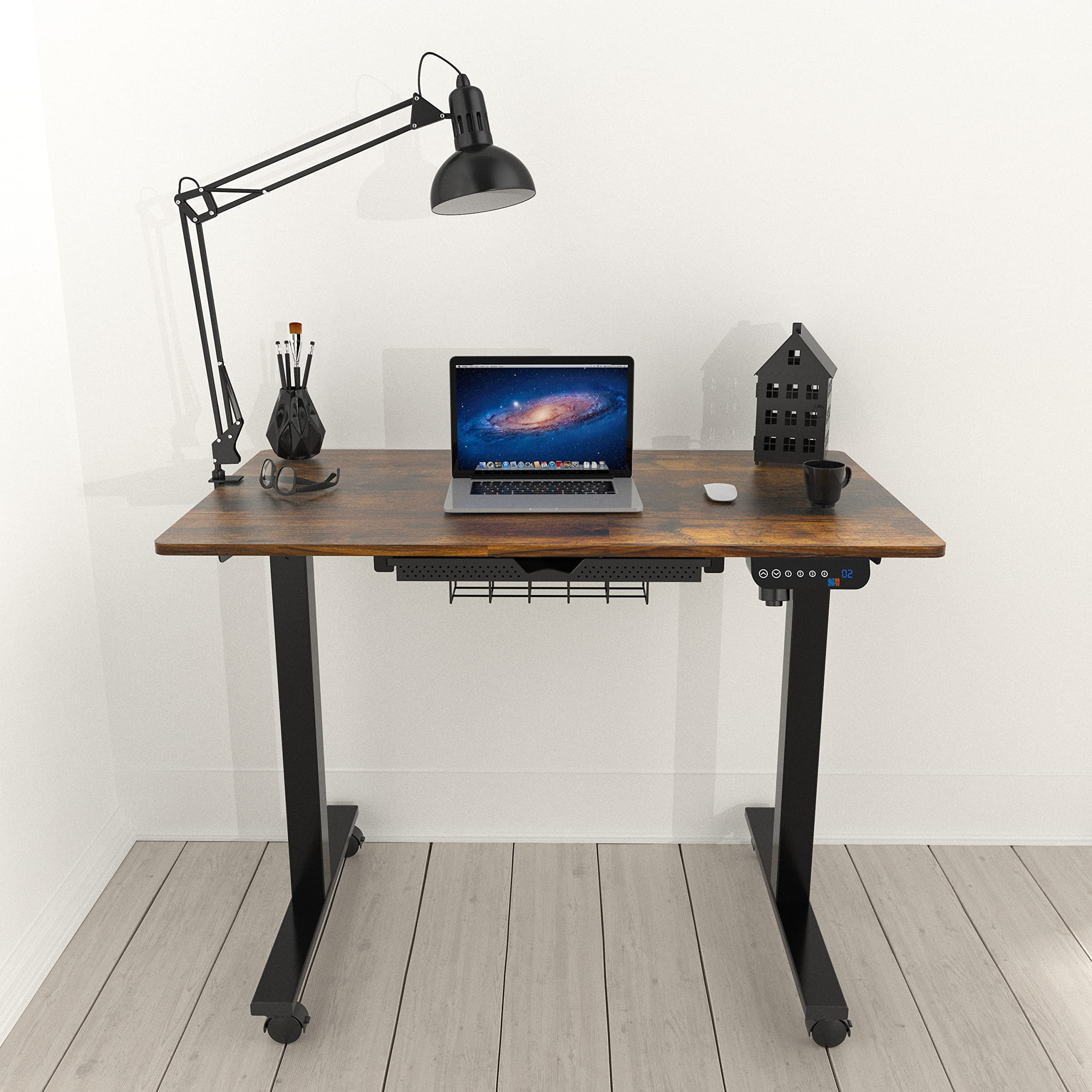 SHW 40-Inch Electric Height Adjustable Mobile Sit Stand Desk with Drawer, Hanging Hooks and Cable Management, Rustic Brown Brand: SHW Color: Rustic Brown Material: Metal, Engineered Wood Special Feature: Height Adjustable, 4 Memory Preset Options, Mobile Dimension: 40″ W x 24″ D x 28-45″ H Quantity: 1