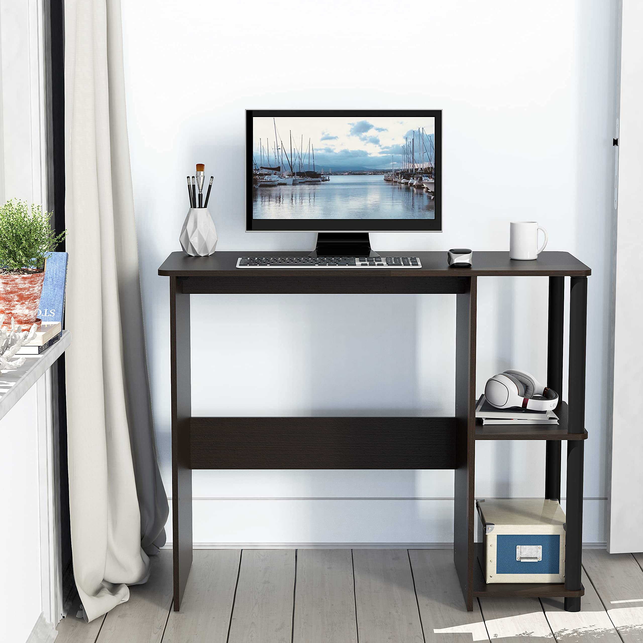 SHW Cyrus 35-Inch Desk with Shelves, Espresso Brand: SHW Color: Espresso Material: Engineered Wood Special Feature: Open Shelves Dimension: 35″ W x 15.6″ D x 28.5″ H Quantity: 1