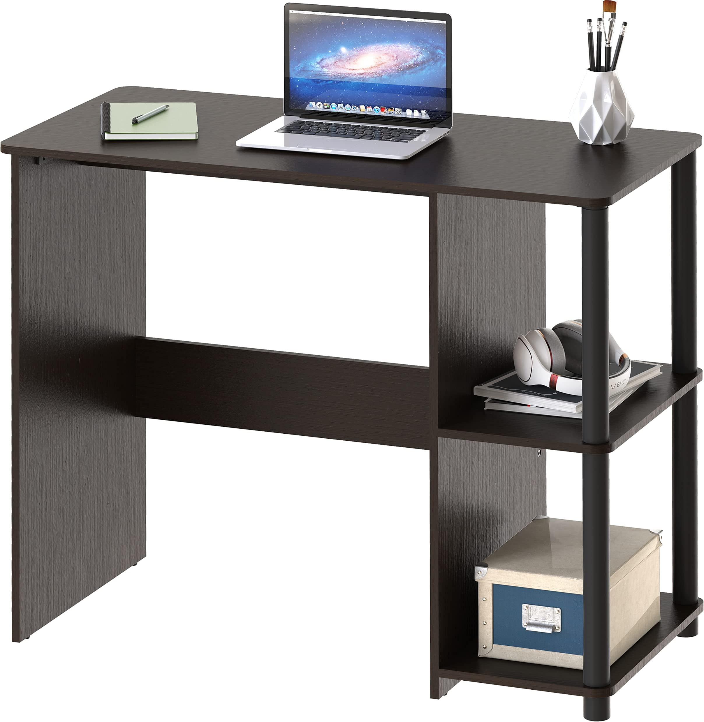 SHW Cyrus 35-Inch Desk with Shelves, Espresso