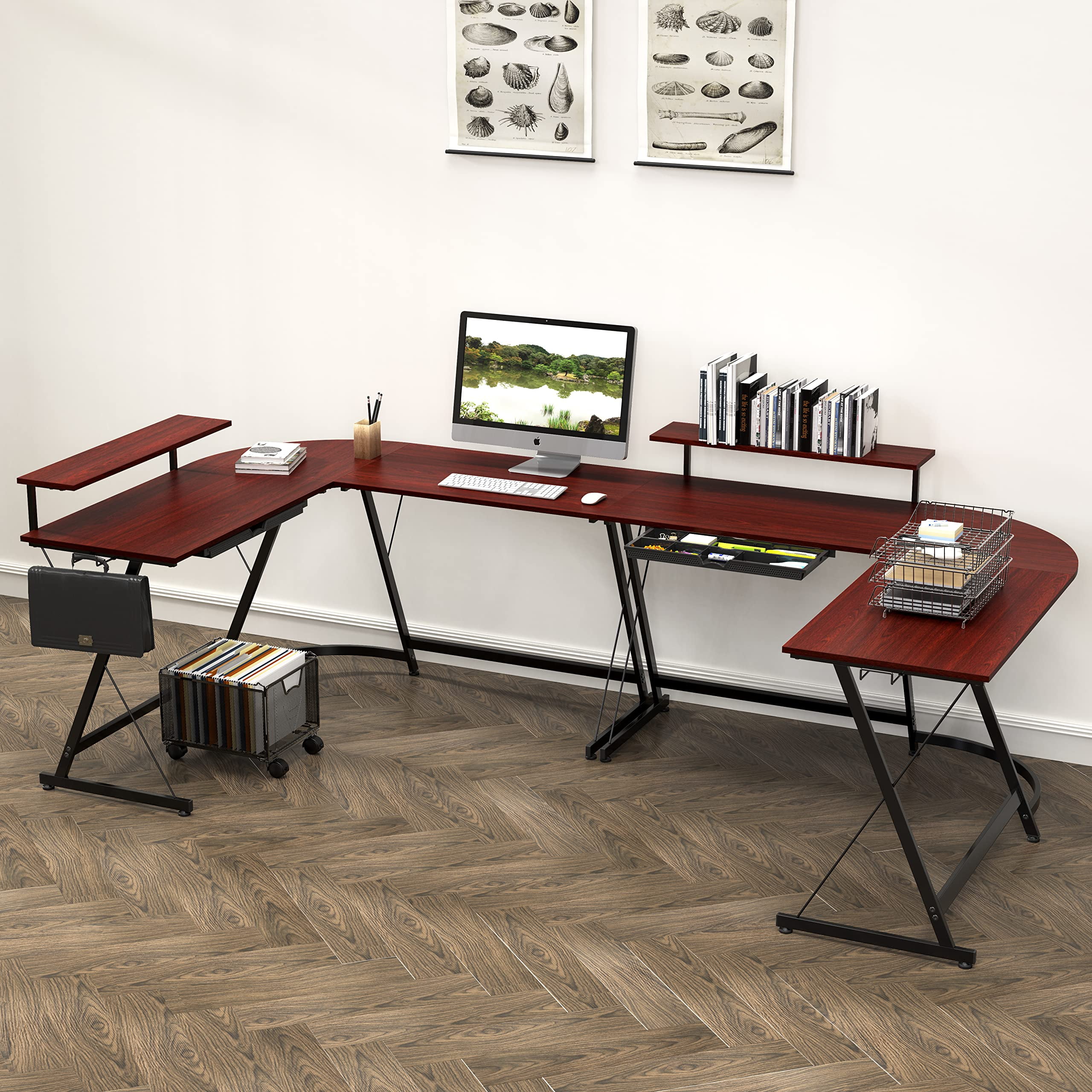 SHW Gaming 51″ L-Shaped Desk with Monitor Stand, Cherry