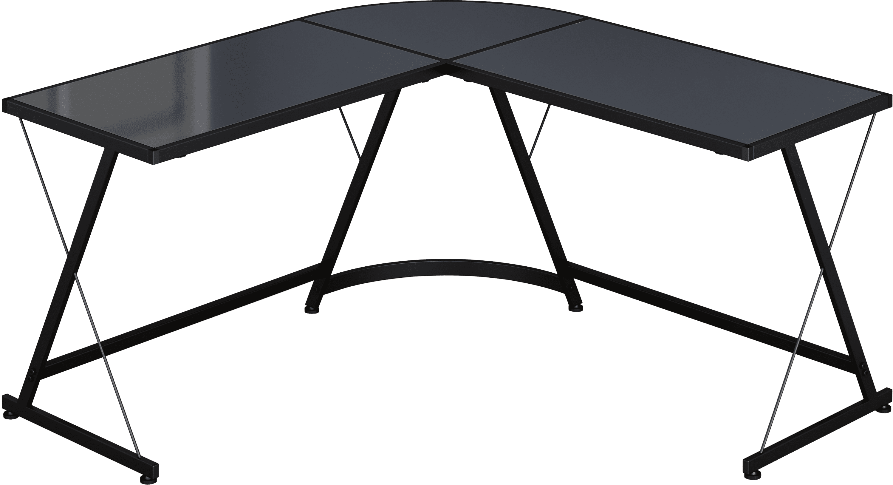 SHW Gaming Desk Computer L-Shape Corner Studio Table, Black, Glass Top Brand: SHW Color: Black Material: Tempered Glass, Metal Special Feature: Tempered Glass Top Dimension: 51 x 19 x 28.5 Inch Quantity: 1