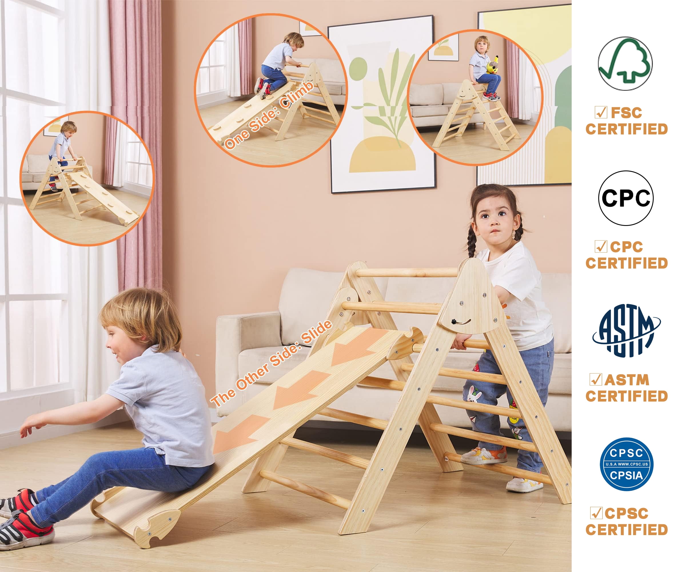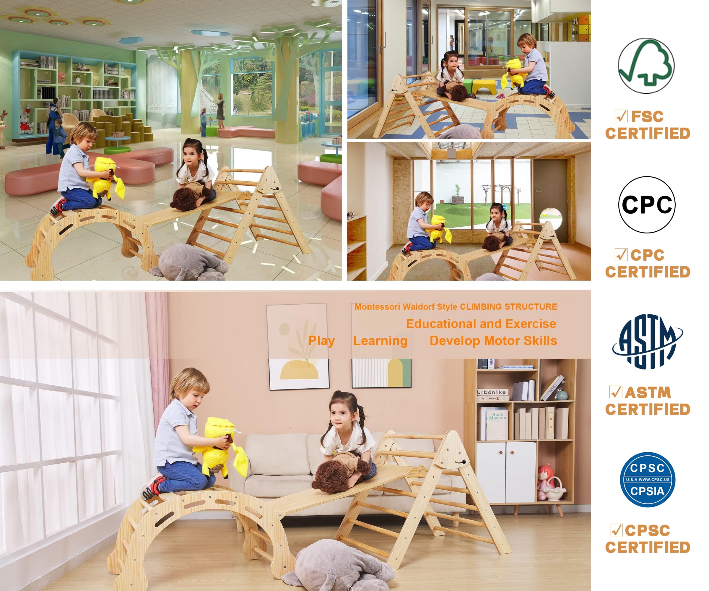 𝐎𝐧𝐞 𝐘𝐞𝐚𝐫 𝐖𝐚𝐫𝐫𝐚𝐧𝐭𝐲: 𝐅𝐫𝐞𝐞 𝐫𝐞𝐩𝐥𝐚𝐜𝐞𝐦𝐞𝐧𝐭 𝐨𝐟 𝐬𝐜𝐫𝐞𝐰𝐬 𝐚𝐧𝐝 𝐨𝐭𝐡𝐞𝐫 𝐚𝐜𝐜𝐞𝐬𝐬𝐨𝐫𝐢𝐞𝐬! *𝐏𝐥𝐞𝐚𝐬𝐞 𝐞𝐦𝐚𝐢𝐥 𝐦𝐞 𝐢𝐟 𝐲𝐨𝐮 𝐡𝐚𝐯𝐞 𝐚𝐧𝐲 𝐪𝐮𝐞𝐬𝐭𝐢𝐨𝐧𝐬. Designed For 1-6 Years, Grow With Child: Awesome daycares toy, super fun, let your child to climb, jump and build forts and castles, and explore fnfinitely~ Make this family “Home Private Playground” climbing toys set a daily activity for your child! It will contracte children’s entire childhood, become the child’s happy base ~Play indoor and outdoor, like carpeted area or on the yard lawn Upgraded 8-In-1 Playground Climbing Toys: It consists of 3 parts, can be used as a single triangle climber, arch ramp, rock climber, slide, rocking chair and others, so also called 3 In 1,4 In 1 or 5 in 1. FANABAS multifunctional climbing structure integrates exercise and entertainment, with at least 8 multiple combinations of play: Climbing Triangle/Triangle Tent Frame/Arch Climber/Waldorf Rocker/Countertop Fence/Arch Tent Frame/Reversible Rock / Reversible Slide