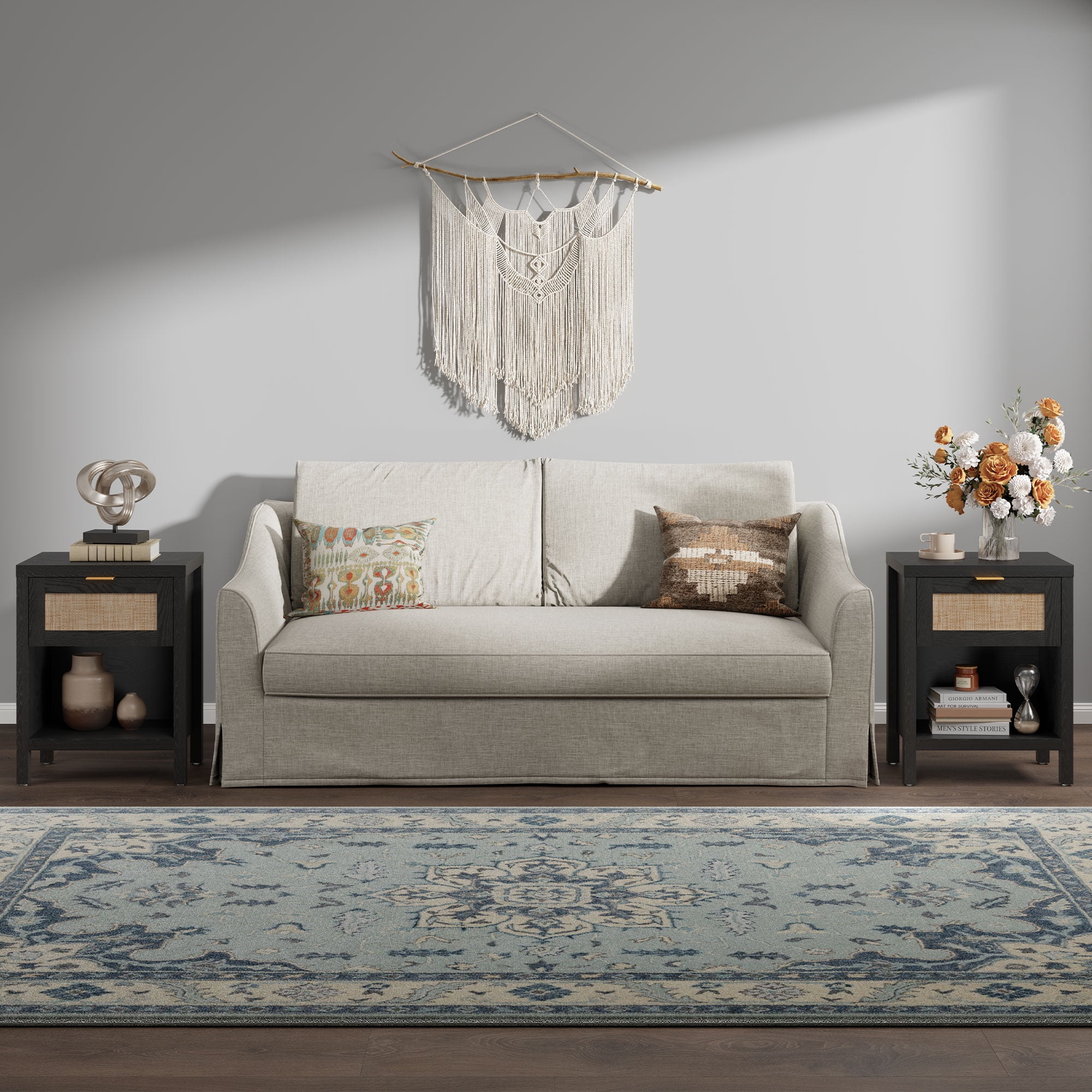 SICOTAS Farmhouse Rattan Nightstand Set of 2 with 1 Drawer and 1 Shelf