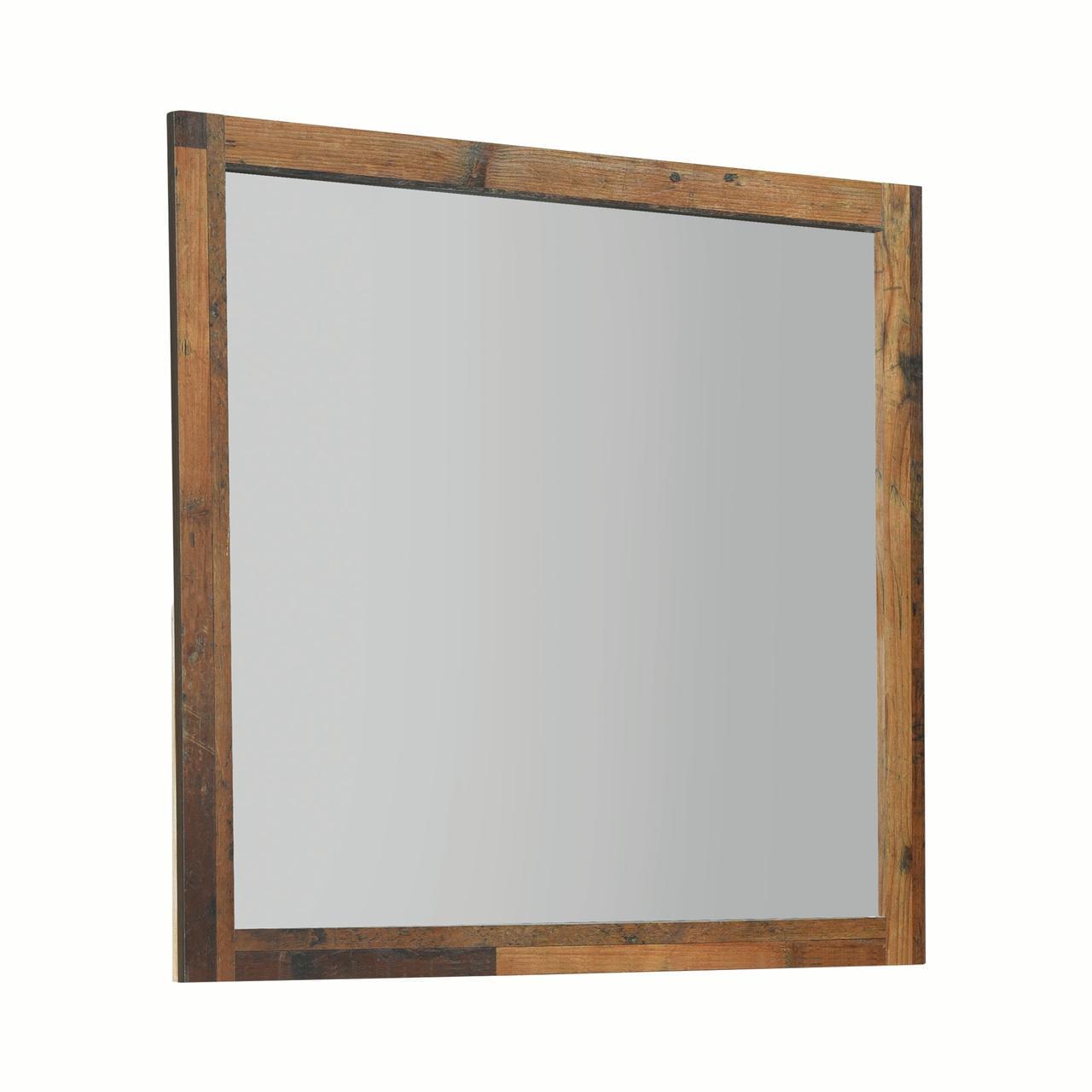 Make your day by indulging in a love of rustic elegance. Notable gradations stand out in the rustic pine finish frame crowning this square wall mirror. Strive for a cabin motif in this contemporary mirror with a pieced frame. Mount it over its matching dresser unit, or create a new style in a bedroom or living space. This inspiring mirror transforms a conventional space into a woodsy cabin setting.