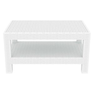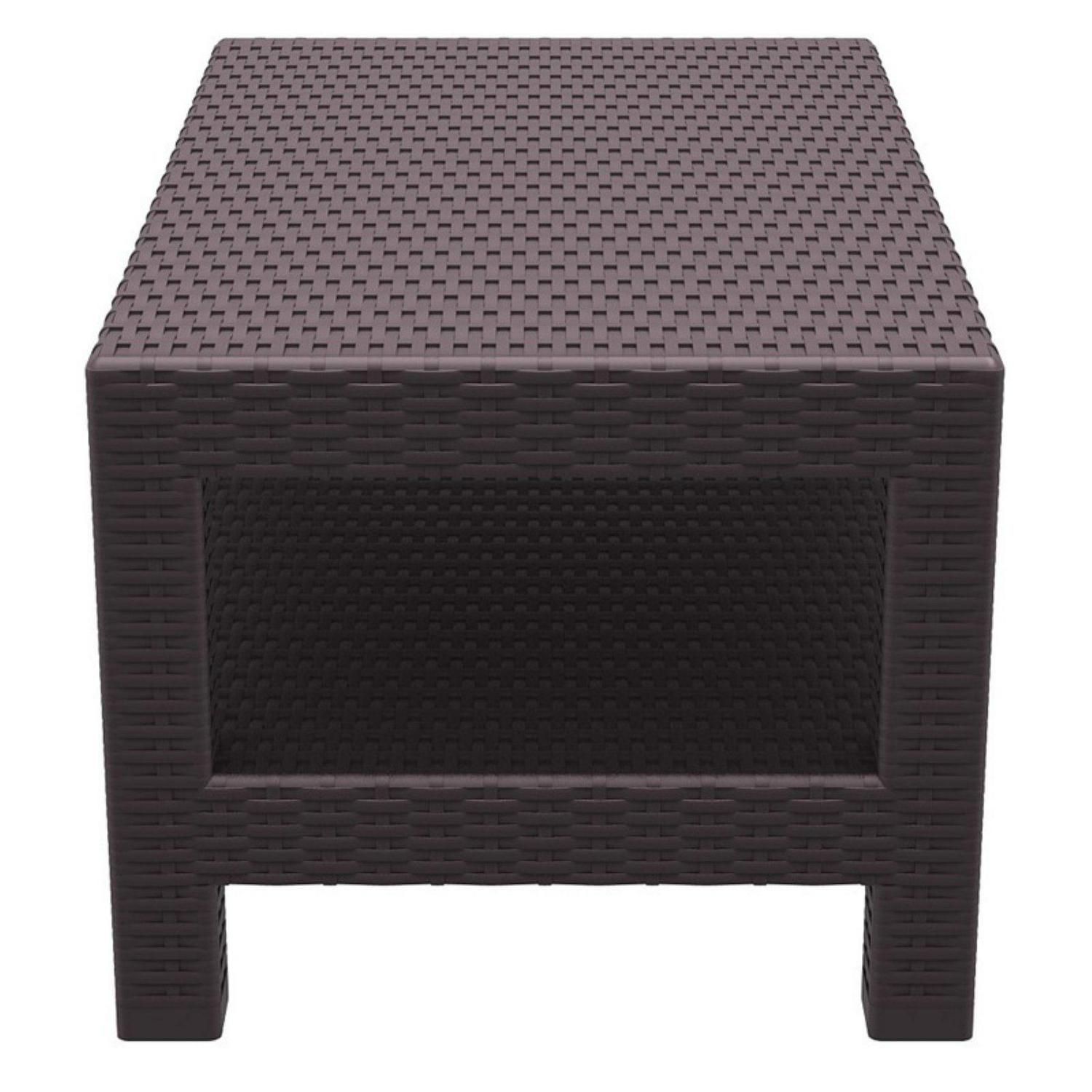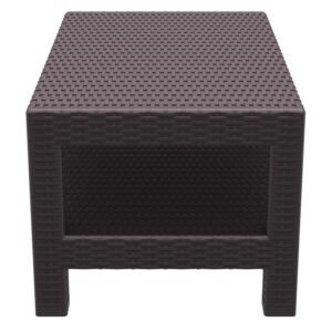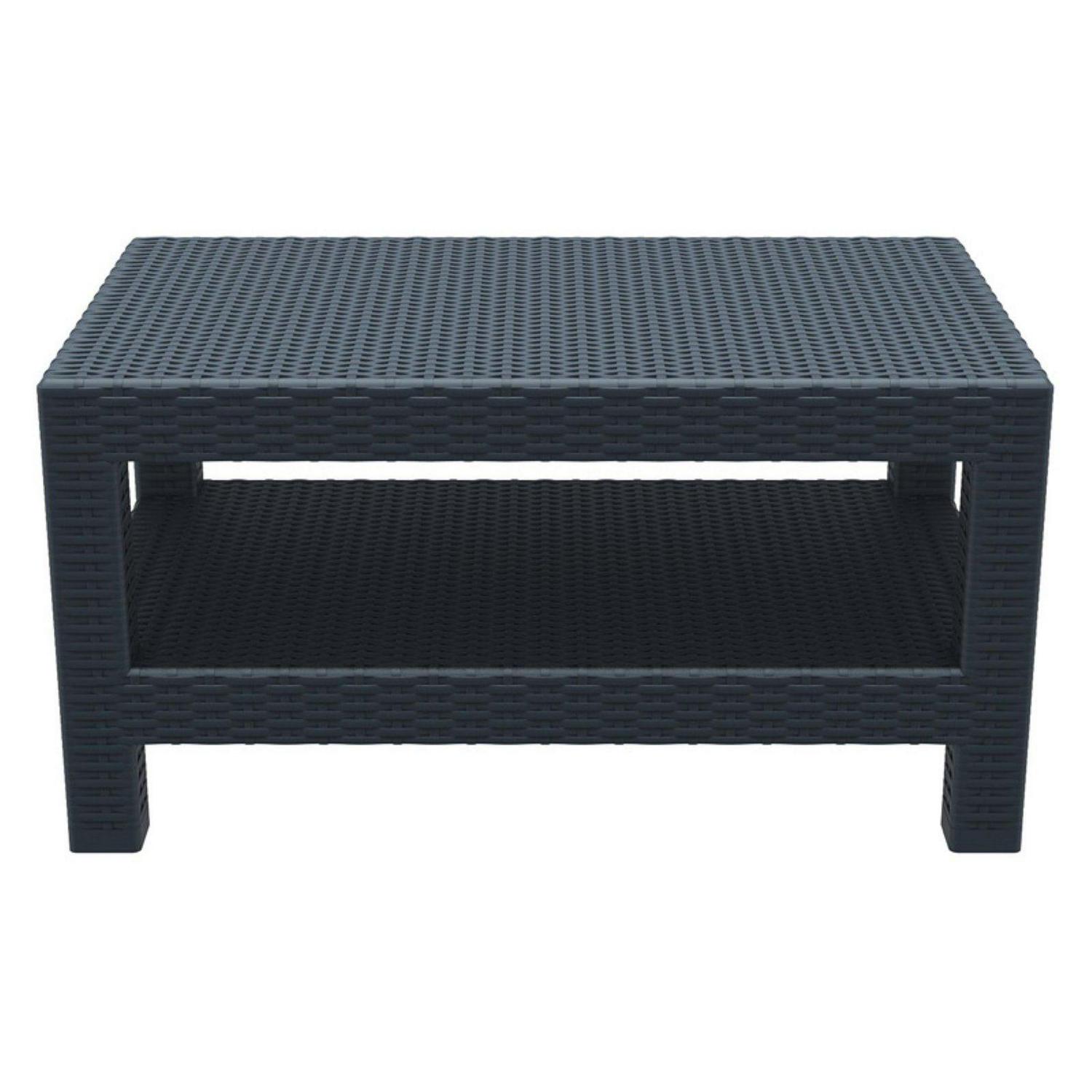 This stylish rectangular patio coffee table with a magazine rack is hard to say no to it. Built with high quality resin, this coffee table works well with outdoor settings such as patios, decks, balconies, and rooftops. The storage rack provides ample space to store your daily essentials like magazines, coffee trays, books, and so on. Product Features: Brown coffee table. Table has a magazine shelf. Wickerlook open weave design. Assembly required. Easy to clean. Resistant to UV, chlorine, salt, stains, weather and suntan oils. Preferred for heavy use areas, pool sides, patios, beach and balcony use. Recommended for both indoor and outdoor use. Care instruction: hose down. Dimensions: 18″H x 36″W x 22.5″D. Material(s): polypropylene/resin