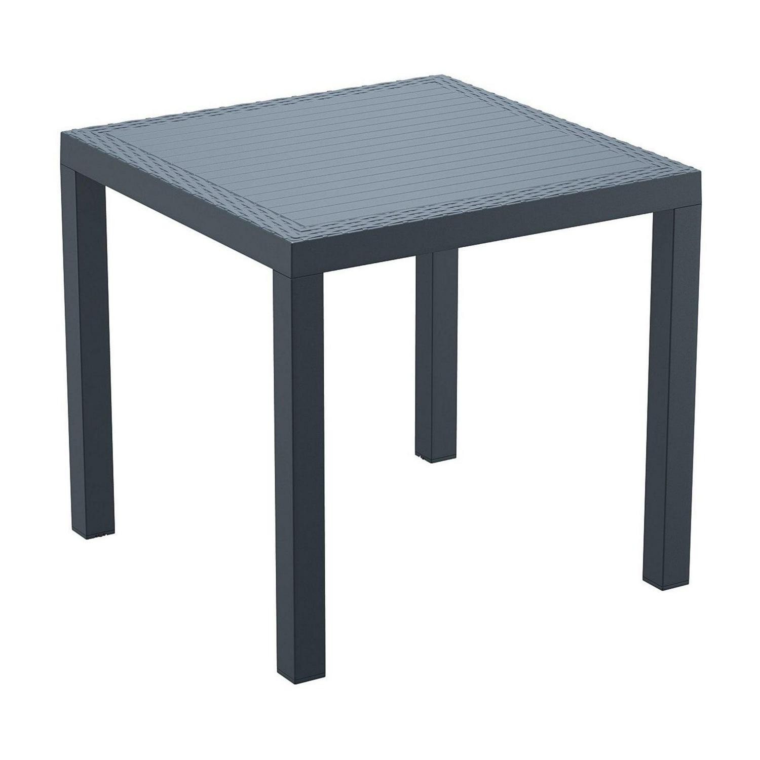 – Dark gray square weatherproof patio dining table
