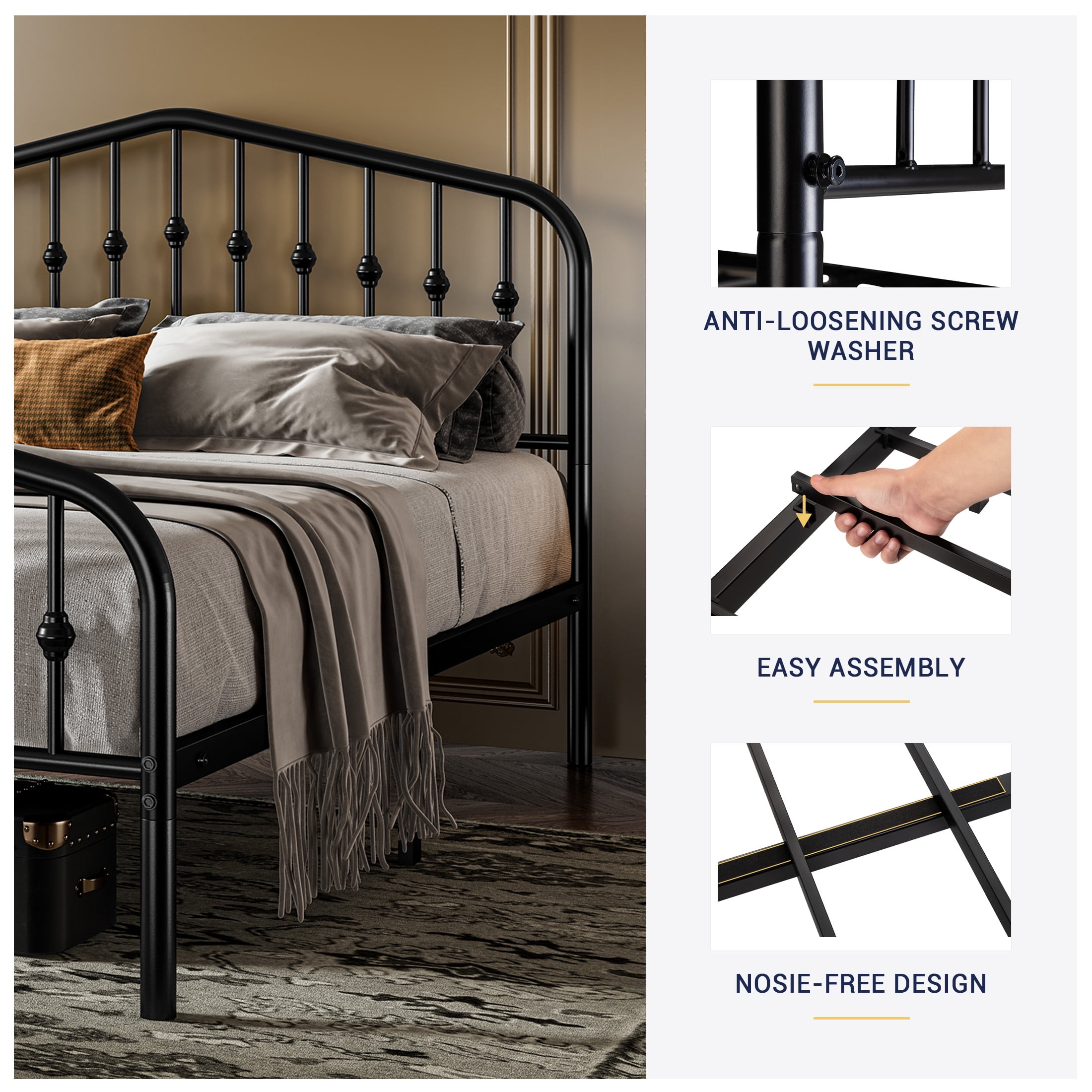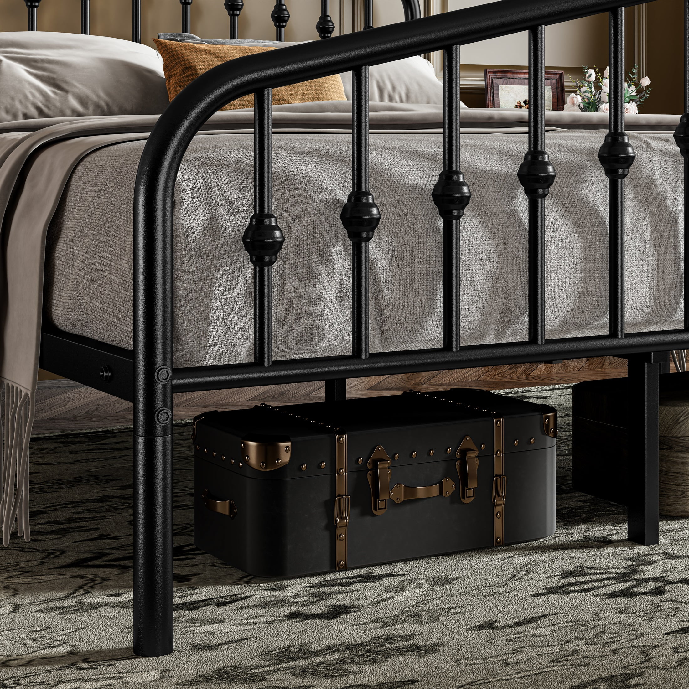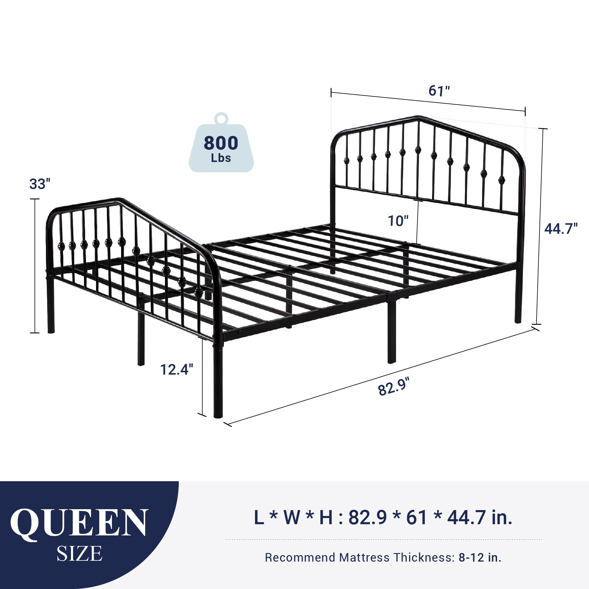Sifurni Black Queen Size Metal Platform Bed Frame with Vintage Victorian Headboard & Footboard, Adult