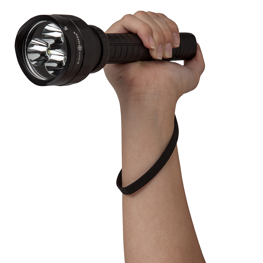 The Sightmark SS2000 triple duty flashlight features Cree LEDs to provide 2000 lumens of light for the most difficult shots or furthest point in the dark of night. The flashlight is constructed with type II mil-spec anodizing aircraft-grade aluminum for durability and protection against corrosion. Equipped with a selector switch that cycles through three settings 2000 lumen, 280 lumens, or strobe the Sightmark SS2000 makes a great addition to any hunting kit. The unique strobe mode feature of the Sightmark SS2000 extends the applications to emergency situations as an alert or as a decoy to distract and disorient targets. It is equipped with two rechargeable batteries, a battery recharger, a weapon mount, an on/off push button, a pressure switch, and three filters. The filters included are green, red, and blue filters that maximize product use. The unit is recoil resistant, waterproof, and lightweight.