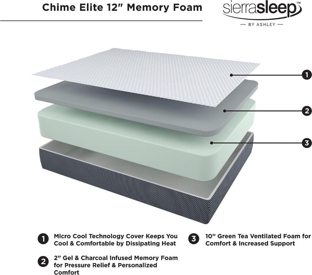 Signature Design by Ashley 12 Inch Chime Elite King Memory Foam Mattress in a box White/Gray