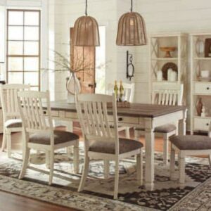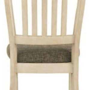 The beauty of the Bolanburg upholstered dining chair is something to savor. Designed to serve up comfort and flair, this rake-back dining chair entices with a cushioned seat covered in a heavy woven fabric that complements the chair s antiqued white finish.