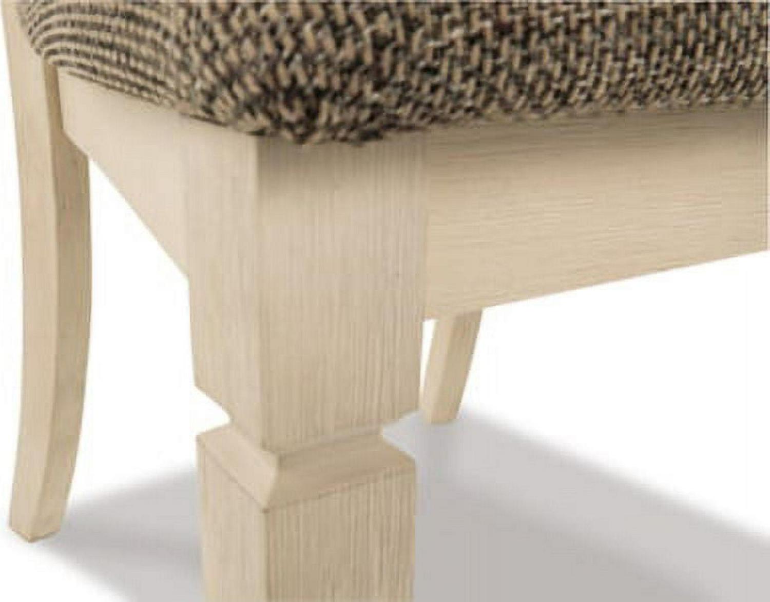Made of solid wood,Antiqued white finish,Cushioned seat upholstered in heavy woven polyester fabric,Assembly required,Excluded from promotional discounts and coupons
